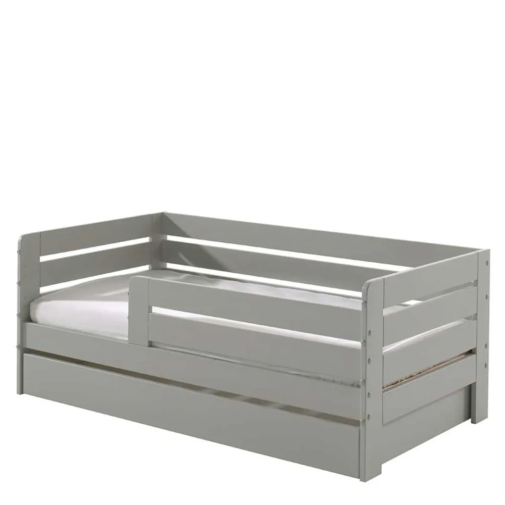 Das Kinderbett „Naosa“ überzeugt mit seiner geradlinigen Gestaltung und seiner neutralen grauen Farbe, die sich perfekt mit verschiedenen Einrichtungsstilen kombinieren lässt. Hier vereinen sich Design und Funktionalität auf stilvolle Weise.
