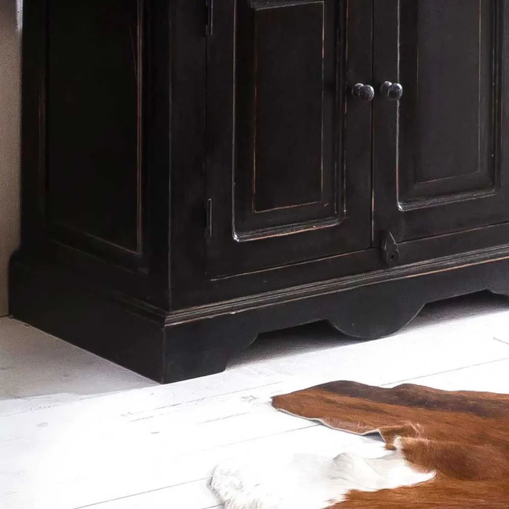- Angefertigt aus Mangobaum Massivholz (Rahmen, Deckplatten, Zierleisten) und solider MDF (Füllungen, Rückwände, Einlegeböden)