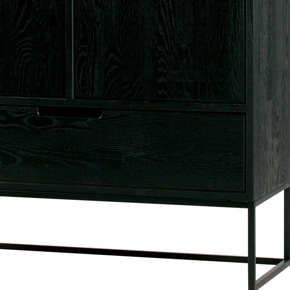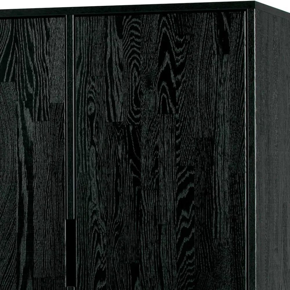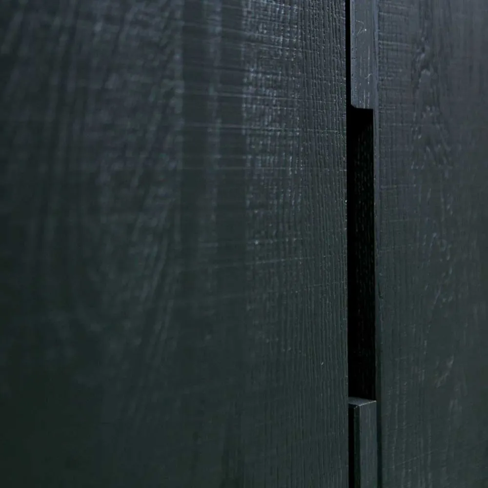 Gefertigt aus massivem Eschenholz bietet Ihnen dieses Möbelstück die Vorzüge eines robusten und zugleich edlen Materials. Eschenholz überzeugt mit besonderer Festigkeit, einer lebendigen Maserung und ausgezeichneter Langlebigkeit. Das Holz wurde sorgsam gebürstet und anschließend schwarz lackiert, wodurch die charakteristischen Strukturen, wie feine Risse und Astlöcher, elegant hervorgehoben werden. Diese natürliche Bearbeitung schenkt jedem Möbelstück eine individuelle Note und betont die Einzigartigkeit Ihres Zuhauses. Dank der Ölbehandlung bleibt das Holz atmungsaktiv, widerstandsfähig und pflegeleicht.