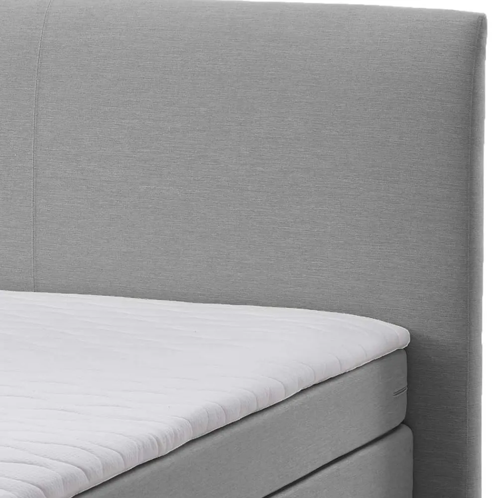 Das Boxspringbett „Lenns“ ist die perfekte Wahl für alle, die nicht nur bequem, sondern auch stilvoll schlafen möchten. Der Webstoff-Außenbezug in Grau besteht aus 100 % Polypropylen und sorgt für eine langlebige Oberfläche. Das gepolsterte Kopfteil ist 118 cm hoch und verfügt über eine dezente Ziernaht, die für ein elegantes Finish sorgt.