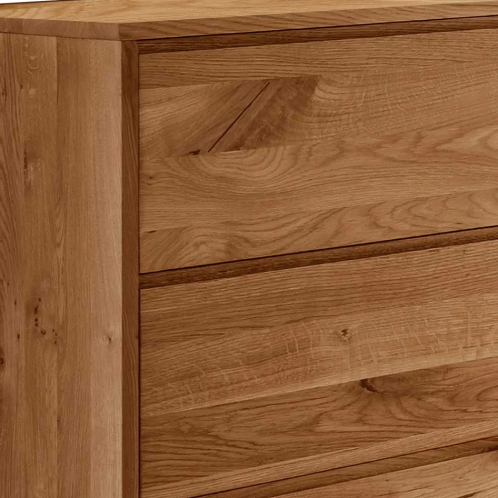 Hergestellt aus massiver Wildeiche, steht die Kommode „Cancun“ nicht nur für außergewöhnliche Haltbarkeit und Strapazierfähigkeit, sondern verkörpert auch eine tiefe Verbundenheit mit der Natur. Die Wildeiche ist bekannt für ihre beeindruckende Härte und Widerstandsfähigkeit, was sie zum idealen Material für hochwertige Möbelstücke macht. Natürliche Wuchsrisse und Astlöcher machen jede Kommode zu einem unverwechselbaren Unikat. Diese charakteristischen Merkmale betonen die authentische Schönheit und den individuellen Charakter des Holzes.