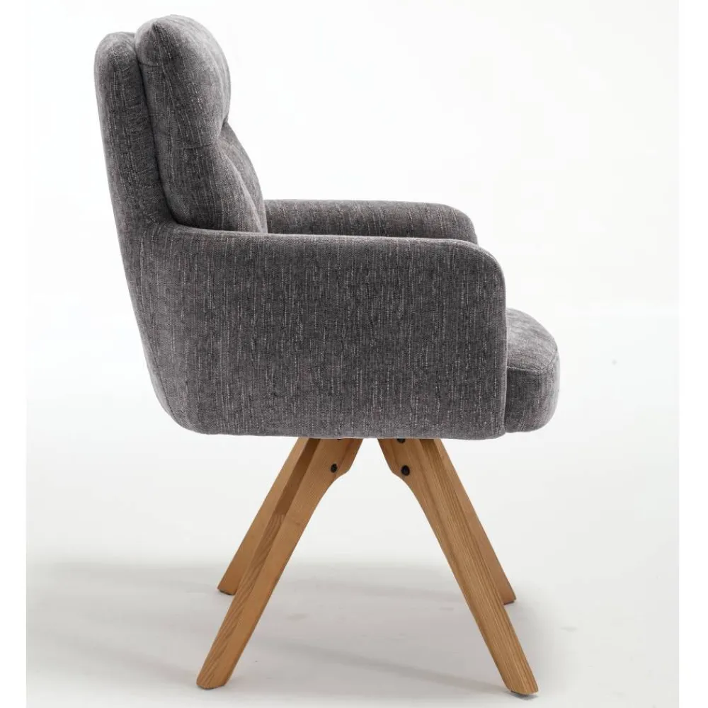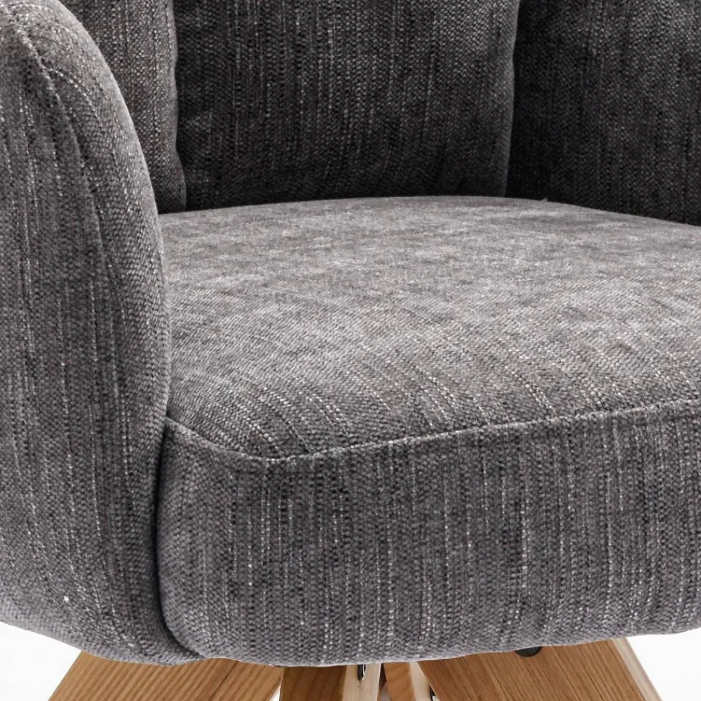 Mit dem grauen Tischsessel „Cregorian“ holen Sie sich einen echten Alleskönner in Ihr Zuhause. In zeitlosem Grau und natürlichen Eichefarben fügt sich dieser Sessel perfekt in verschiedenste Einrichtungsstile ein. Das schlichte, aber dennoch auffällige Design macht ihn zu einem wahren Hingucker in Ihrem Esszimmer, Wohnzimmer oder Büro. Durch die praktische Drehfunktion ist er zudem äußerst funktional und flexibel in der Nutzung – ideal, wenn Sie nach einem Sessel suchen, der sowohl Komfort als auch Design vereint.