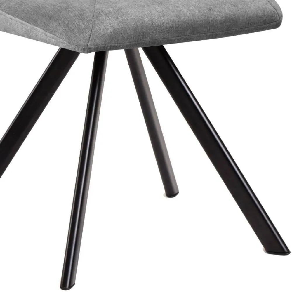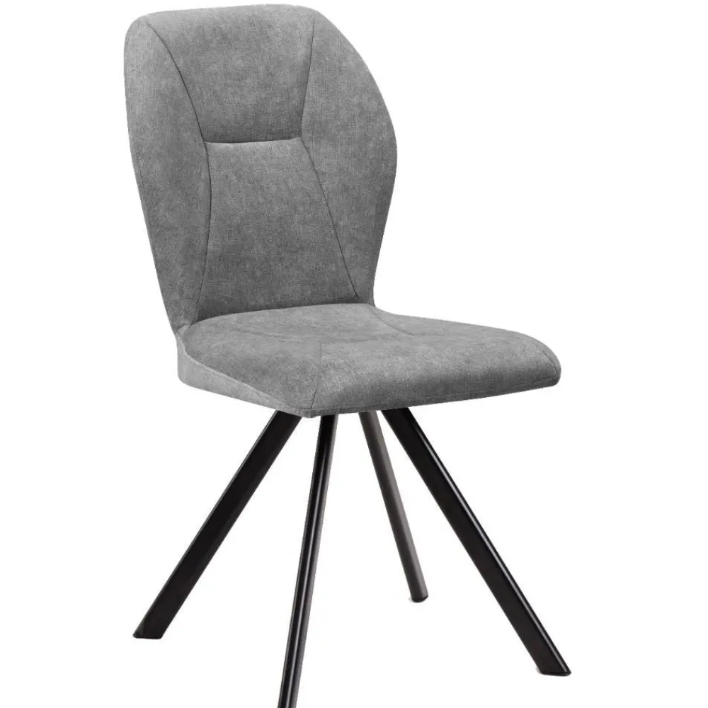 Die leicht nach hinten geneigte Rückenlehne unterstützt eine entspannte Sitzhaltung und wird durch dekorative Ziernähte optisch aufgewertet. Das abgespreizte Gestell aus schwarzem Metall sorgt für Stabilität und unterstreicht das moderne Gesamtbild des Stuhls. Hier treffen Komfort und Design auf gelungene Weise zusammen.