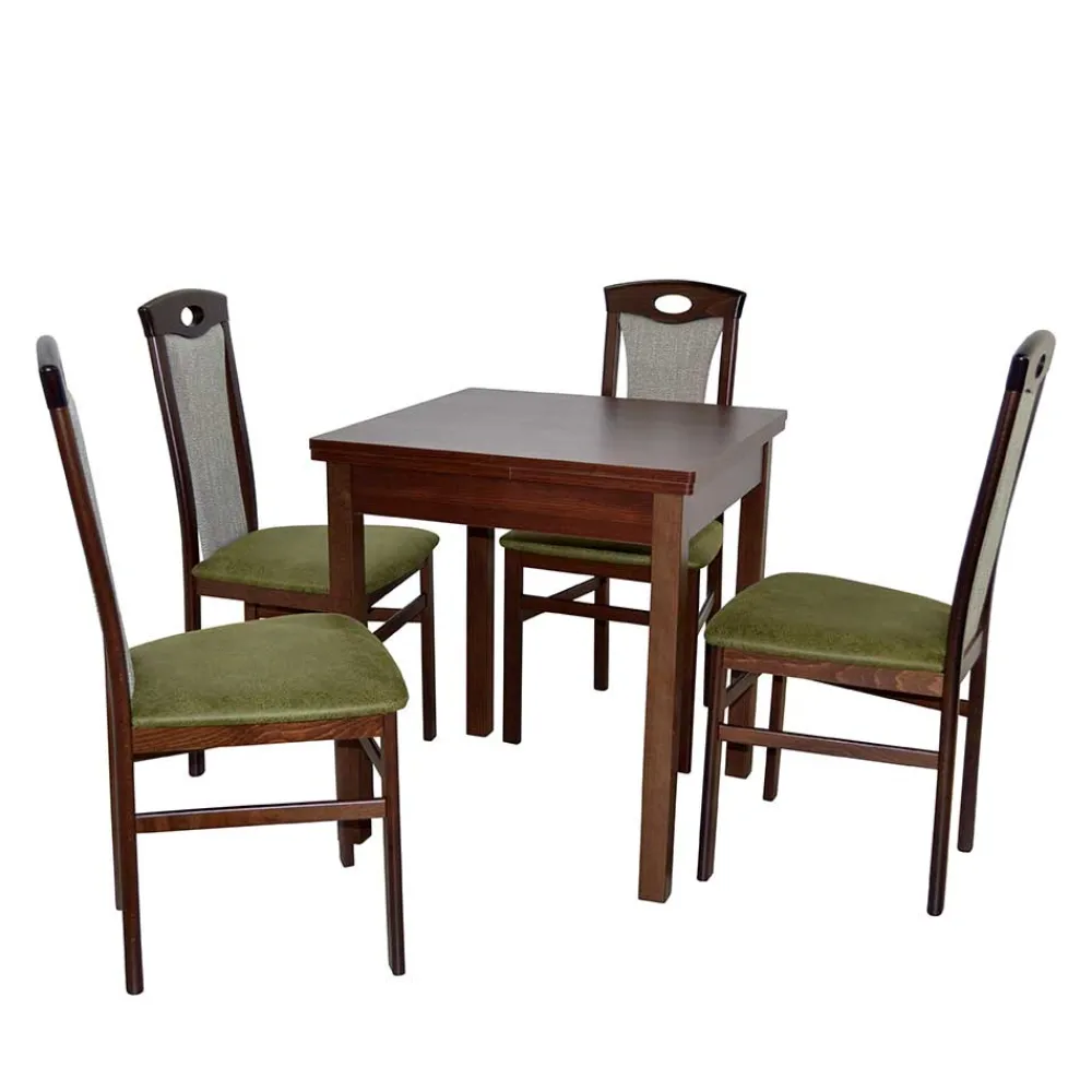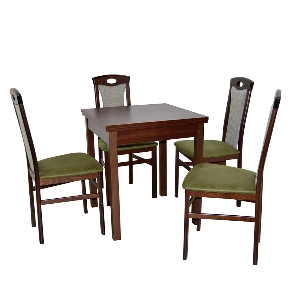 - Solide Tischgruppe in Nussbaumfarben und Grün