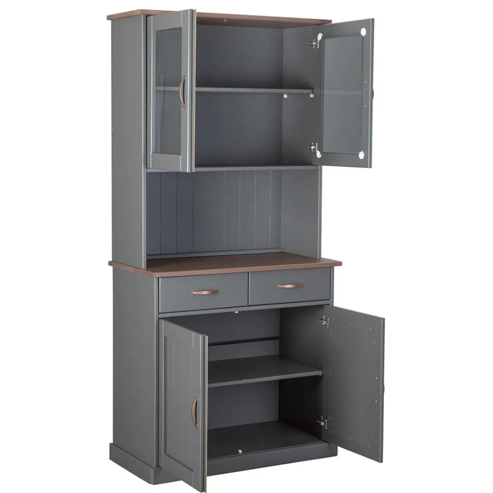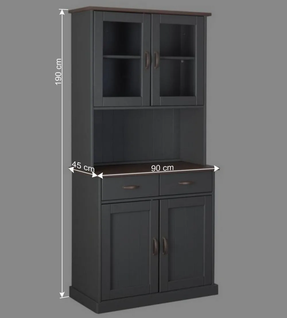 Mit Abmessungen von 90 cm Breite, 190 cm Höhe und 45 cm Tiefe entpuppt sich der Buffetschrank „Nepplan“ als wahrer Stauraumgigant. Ob Geschirr, Bücher oder Dekorationsgegenstände, alles findet hier seinen Platz. Die vier Türen, davon zwei mit Glas für stilvolle Einblicke und zwei mit robuster Paneelfüllung, bieten vielfältige Aufbewahrungsmöglichkeiten. Ergänzt durch zwei geräumige Schubladen auf Metallauszügen, bietet dieser Schrank eine optimale Organisation und leichten Zugriff.