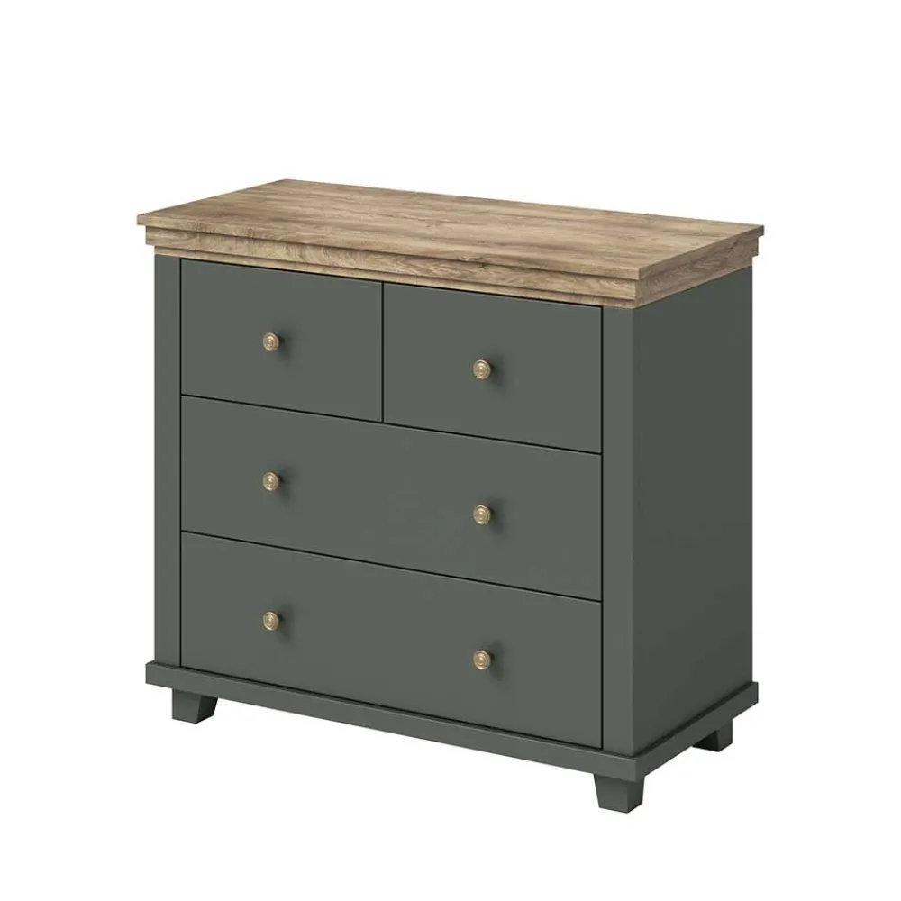 Gefertigt aus robuster, hochwertiger Spanplatte präsentiert sich die Kommode als langlebiger Begleiter für den Alltag. Die solide Konstruktion sorgt für Stabilität und eine angenehme Haptik, die Qualität spürbar macht. Matte, dunkelgrün beschichtete Oberflächen verleihen dem Möbelstück eine elegante Tiefe, die Ruhe und Natürlichkeit ausstrahlt. Das Finish fühlt sich samtig und angenehm an – eine Oberfläche, die zum Darüberstreichen einlädt und zugleich pflegeleicht sowie widerstandsfähig gegenüber Kratzern und Feuchtigkeit ist.
