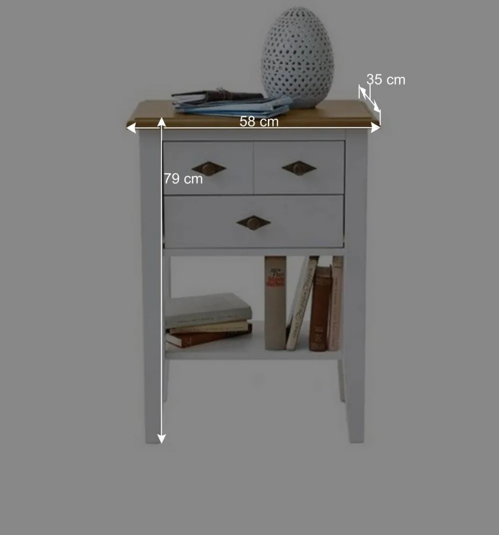 Mit den Maßen von 58 cm in der Breite, 79 cm in der Höhe und 35 cm in der Tiefe fügt sich die Kommode „Sibiuta“ harmonisch in jeden Raum ein und schafft zugleich wertvollen Stauraum.