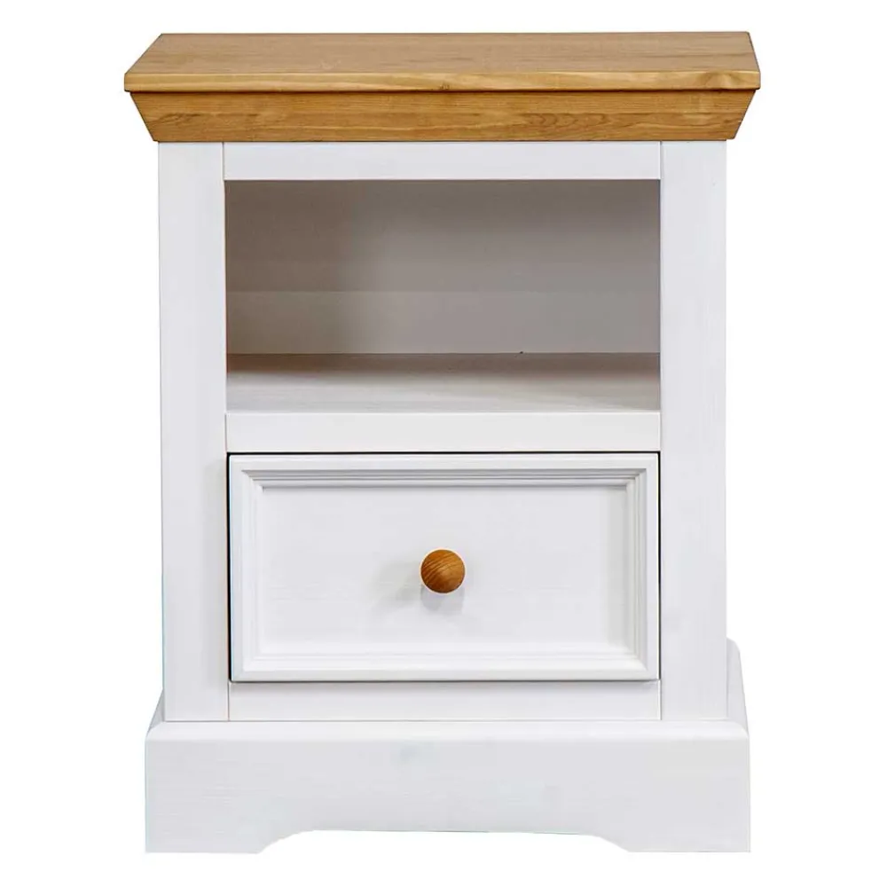- Kompakte Nachtkommode in Weiß und Eichefarben