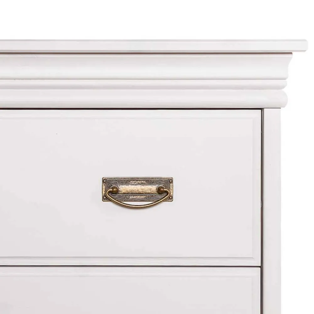 Die Kommode „Presto“ ist aus massivem Kiefernholz gefertigt, einem Material, das für seine Langlebigkeit und Robustheit geschätzt wird. Kiefernholz ist nicht nur widerstandsfähig, sondern auch besonders nachhaltig, da es aus kontrollierter Forstwirtschaft stammt. Die Oberflächen sind mit einem weißen, UV-gehärteten Lack auf Wasserbasis behandelt, der eine Deckkraft von 85 % bietet und zugleich umweltfreundlich ist.