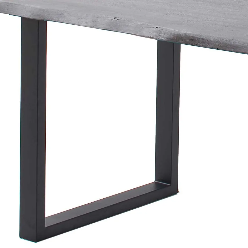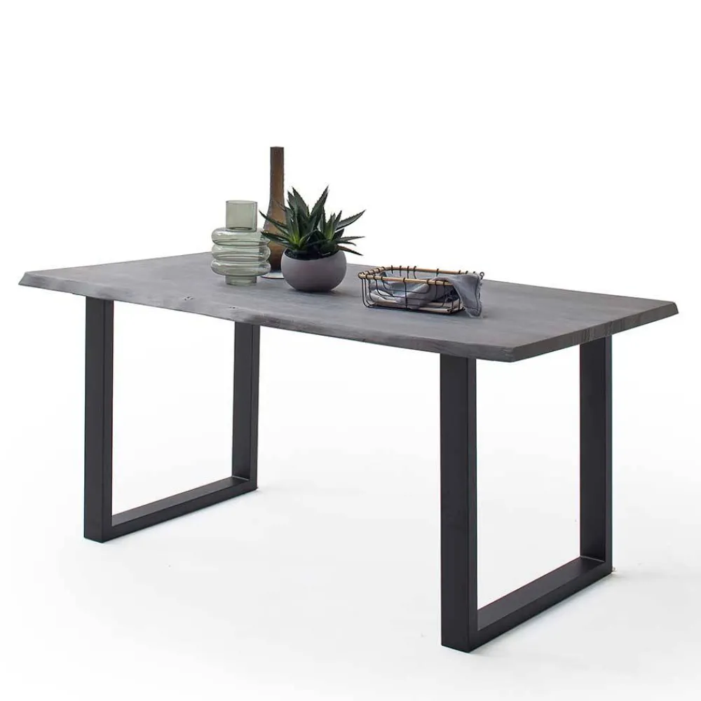 Verleihen Sie Ihrem Essbereich einen Hauch von Natur und Eleganz mit dem Baumkanten Küchentisch „Balanza“. Dieser Tisch vereint stilvolles Design mit natürlicher Schönheit und ist der perfekte Mittelpunkt für moderne Küchen und Esszimmer. Seine charmante Farbgebung in Akazie Grau und das edle Metallgestell machen ihn zu einem echten Hingucker, der sowohl einladend als auch cool wirkt.
