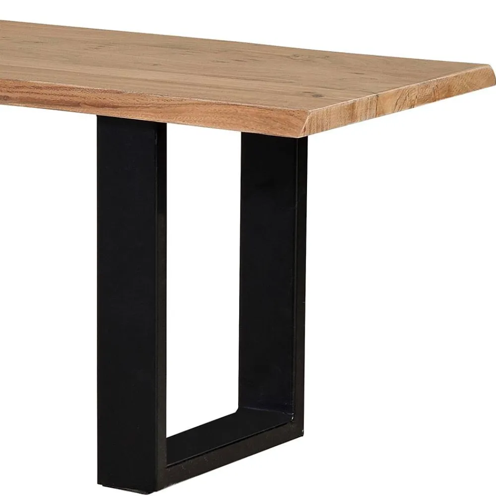 Die Esstisch Bank „Calivia“ vereint markant-rustikales Design mit modernem Industry-Flair und bringt so einen Hauch von Loft-Charakter in Ihr Zuhause. Das Zusammenspiel aus massivem Akazienholz in natürlicher Farbgebung und robustem, schwarzem Metall verleiht der Bank eine außergewöhnliche Ausstrahlung, die sowohl in einem urbanen Esszimmer als auch in einem gemütlichen Landhausambiente perfekt zur Geltung kommt.