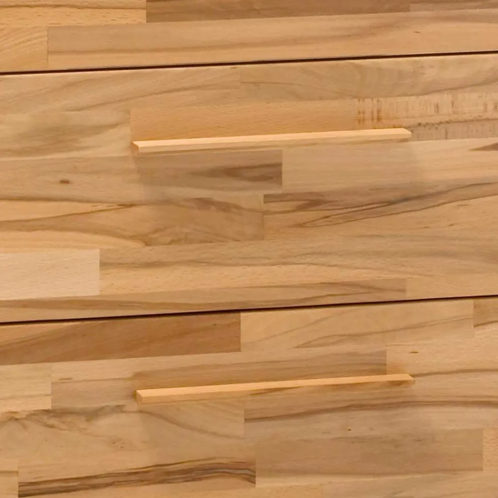 - Drei Schubladen mit Metallauszug, Soft Close und Selbsteinzug, Front aus Kernbuche, innen Akazie Massivholz