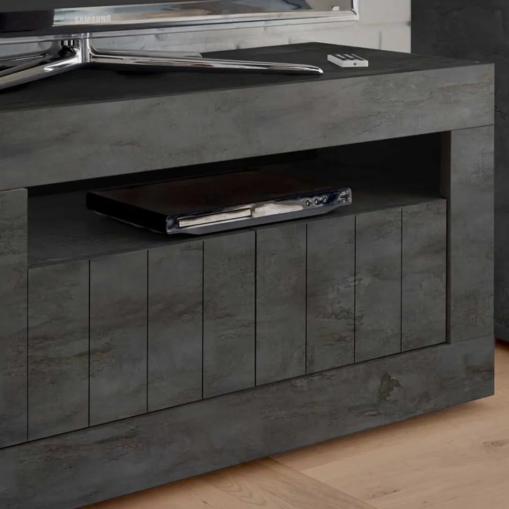 Wohnen Loft Möbel|Industrial Möbel*Modern-geradliniges TV Board in Dunkelgrau Dekor – Bella