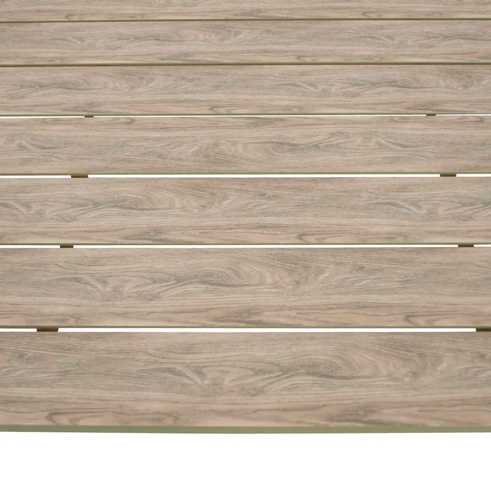 Der „Ruberta“ Gartentisch überzeugt mit einem modernen Design, das perfekte Balance zwischen Schlichtheit und Stil bietet. Mit seiner naturfarbenen Holzoptik und der eleganten Beige-Farbgebung fügt sich der Tisch harmonisch in jede Gartenlandschaft ein. Die Tischplatte in Holzoptik wirkt dabei nicht nur äußerst ästhetisch, sondern vermittelt auch ein Gefühl von Natürlichkeit und Wärme. Kombiniert mit dem Aluminium-Gestell, das eine robuste und doch leichte Struktur bietet, entsteht ein Möbelstück, das sowohl in Funktionalität als auch im Design herausragt.