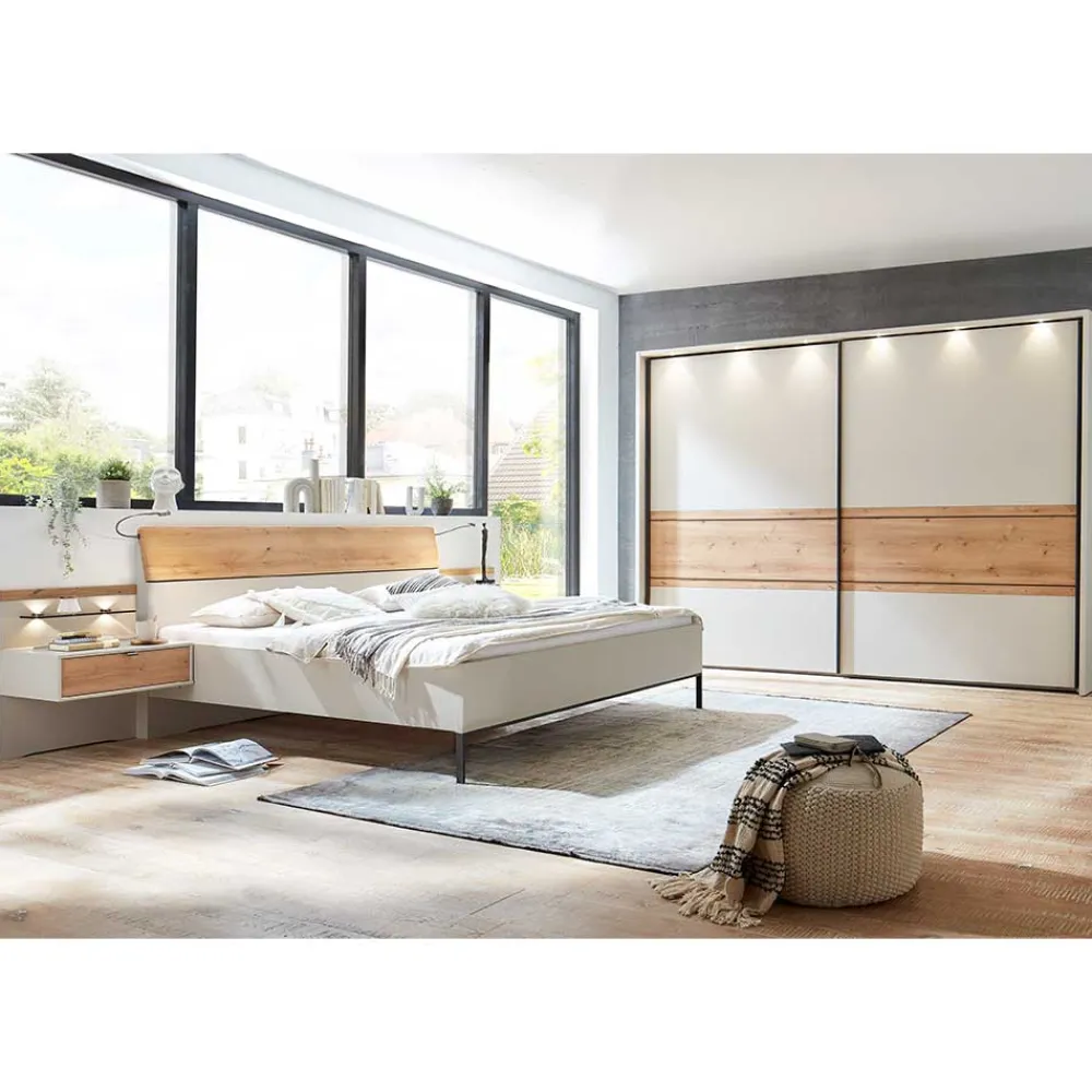 - Hochwertige Schlafzimmer Möbel in Beige und Eiche Bianco