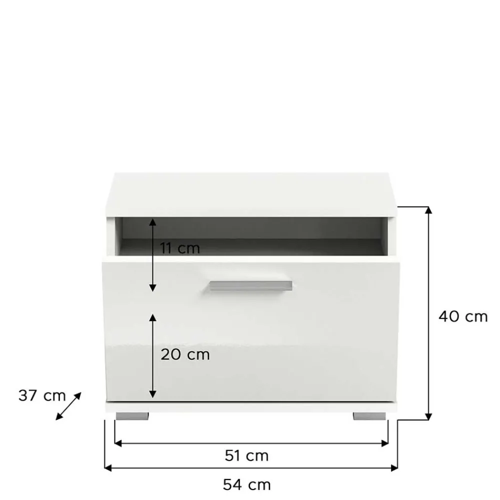 Der Schrank im Set ist ein wahres Stauraumwunder. Mit einer Tür, die beidseitig montiert werden kann, bietet er eine flexible Nutzung und lässt sich ideal an Ihre Bedürfnisse und den vorhandenen Raum anpassen. Im Inneren befinden sich eine ausziehbare Metall-Kleiderstange, ein Hutboden sowie ein Einlegeboden, die genügend Platz für Ihre Kleidung bieten. Die Tür des Schranks ist mit robusten Metallbeschlägen versehen, die für eine lange Lebensdauer und eine einfache Handhabung sorgen. Die silberfarbige Kunststoff-Griffleiste rundet das Gesamtbild des Schranks ab und fügt sich harmonisch in das Design ein. Der Schrank steht ebenfalls stabil auf silberfarbigen Kunststoff-Füßen und verfügt über eine Kippsicherung, die für zusätzliche Sicherheit sorgt.