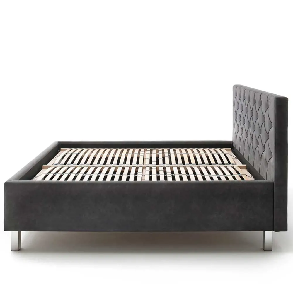 - Erstklassiges Polsterbett in Anthrazit und Chromfarben