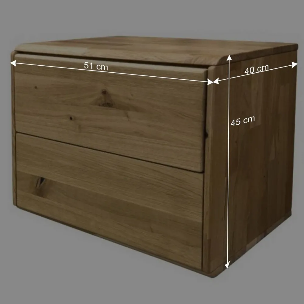 Wildeiche ist mehr als nur Holz – es ist ein Statement für Beständigkeit und Stil. Das robuste Material überzeugt mit seiner hohen Dichte und Härte, was die Nachtkommode Feanor besonders langlebig und widerstandsfähig macht. Gleichzeitig strahlt es Wärme und Ruhe aus. Jeder Griff über die samtig geölte Oberfläche ist ein Erlebnis: weich, angenehm und dennoch kraftvoll – ein spürbares Zeichen echter Handwerkskunst. Die natürliche Maserung variiert von Stück zu Stück und macht jede Kommode zu einem persönlichen Einzelstück mit Seele.