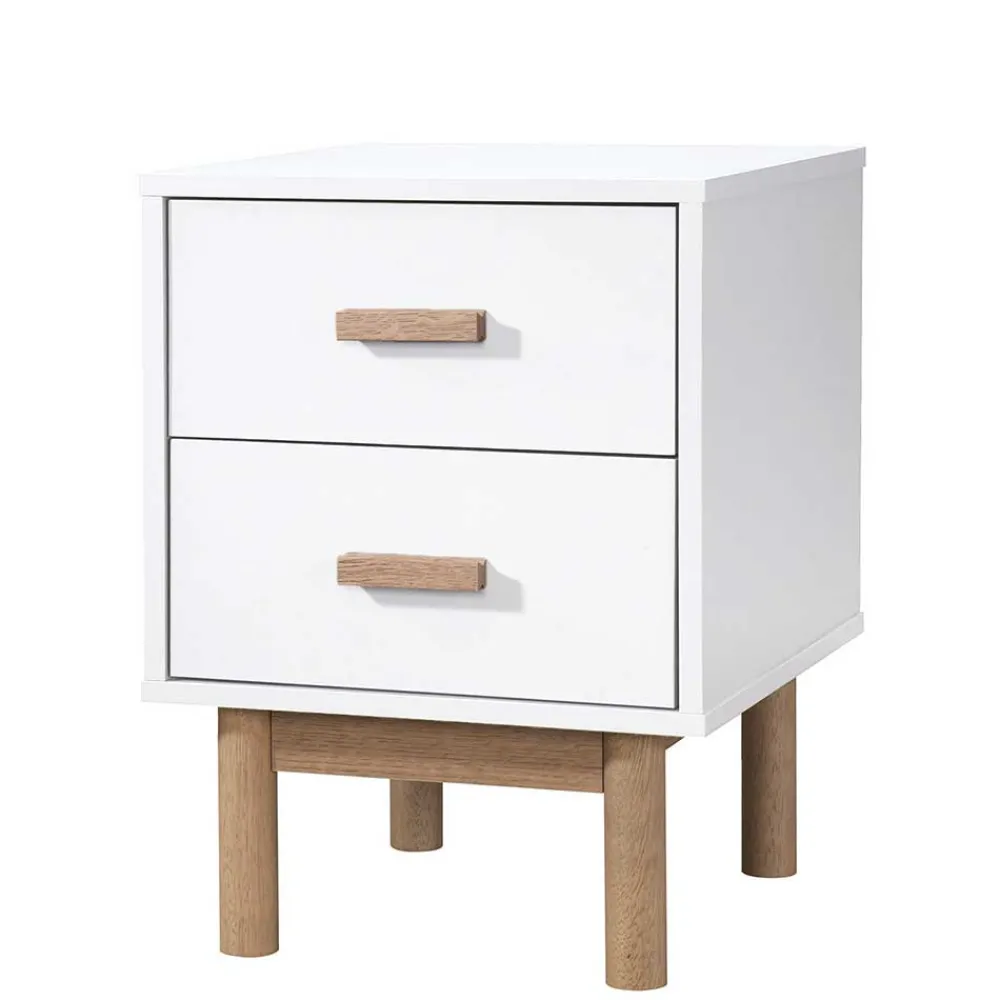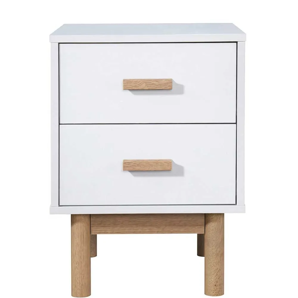 - Zeitlose Nachtkommode in Weiß und Eichefarben