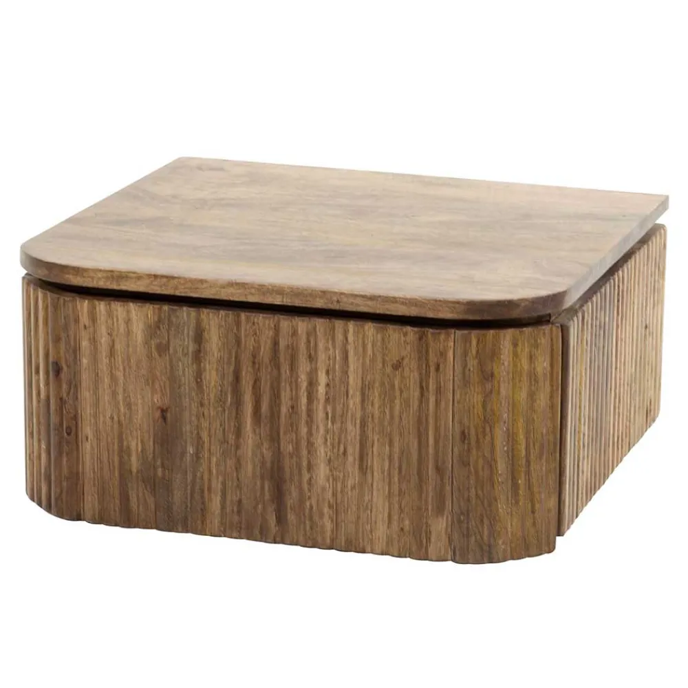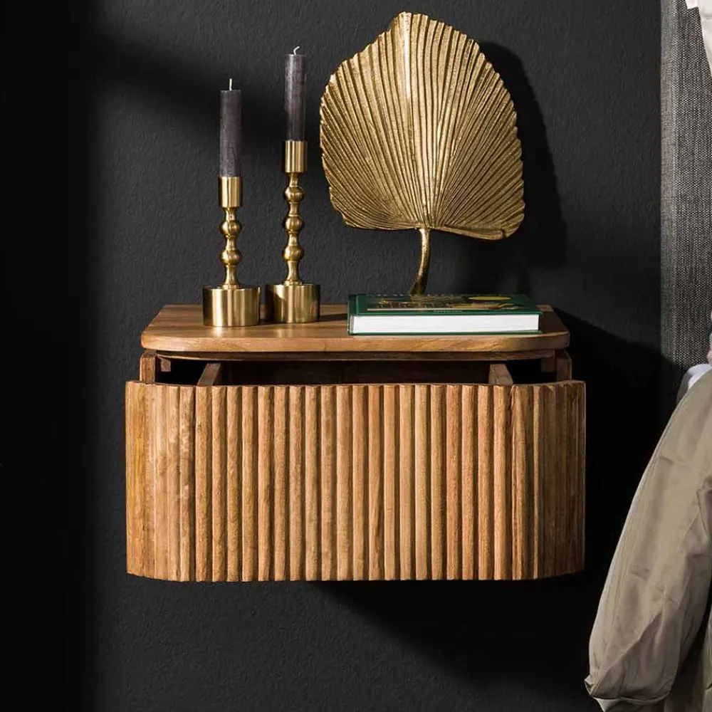 Die Nachtkonsole „Izunamy“ ist aus massivem Mangobaumholz gefertigt, einem Material, das nicht nur äußerst langlebig ist, sondern auch mit einzigartigen Vorzügen glänzt. Mangobaumholz zeichnet sich durch seine bemerkenswerte Härte und Stabilität aus, was eine lange Lebensdauer gewährleistet. Darüber hinaus ist Mangobaumholz bekannt für seine lebhafte Maserung, die jedem Stück einen unverwechselbaren Charakter verleiht. Mit „Izunamy“ holen Sie sich also nicht nur ein funktionales Möbelstück, sondern auch ein echtes Unikat in Ihr Zuhause.