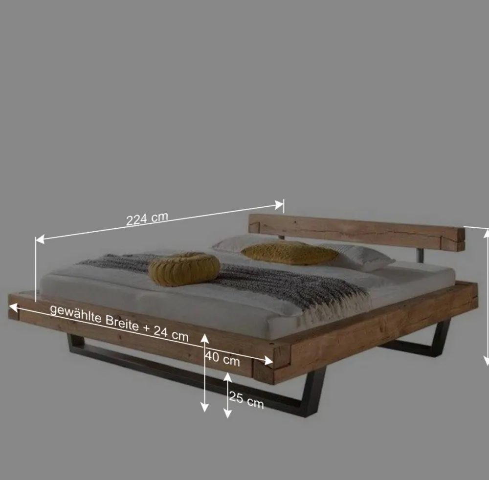 Das Balkenbett „Iloventa“ hat eine komfortable Höhe von 75 cm und eine Tiefe von 224 cm. Die Liegefläche ist zwischen 140×200 cm bis 200×200 cm wählbar, um Ihnen die perfekte Größe für Ihr Schlafzimmer zu bieten.