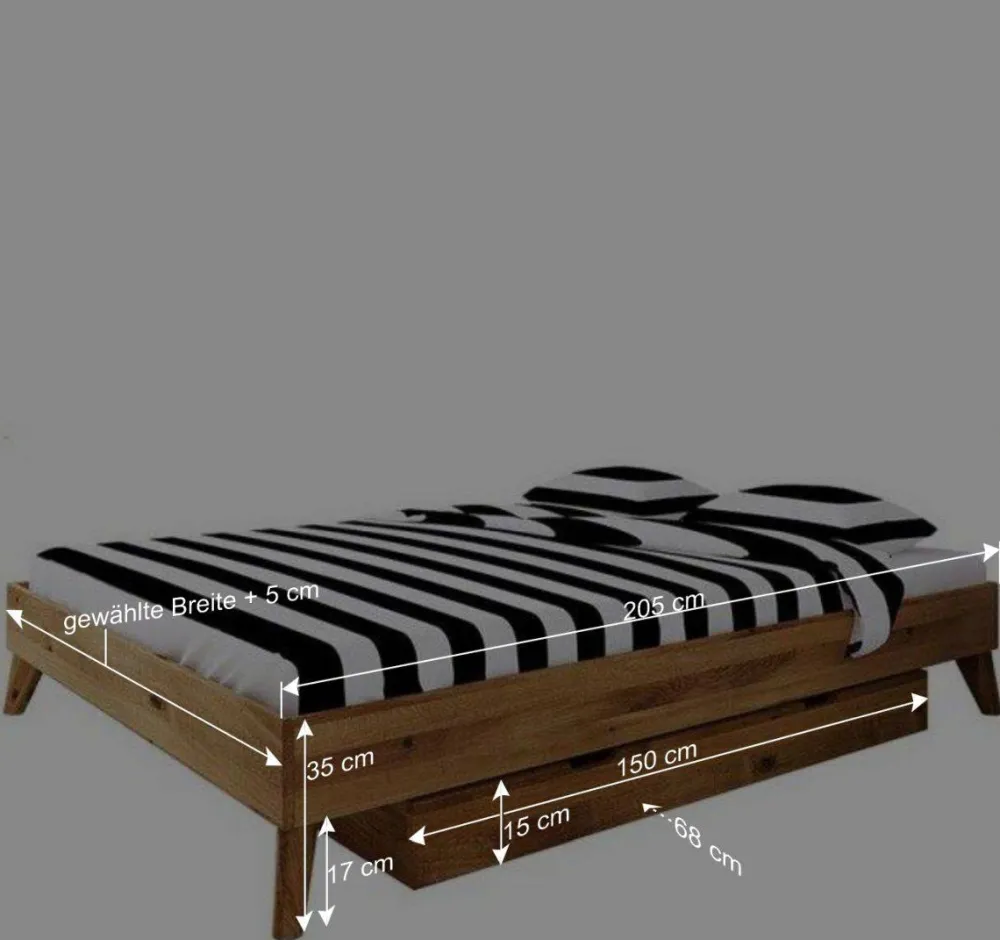 - Ohne Kopfteil, daher super für Zimmer mit Dachschrägen geeignet