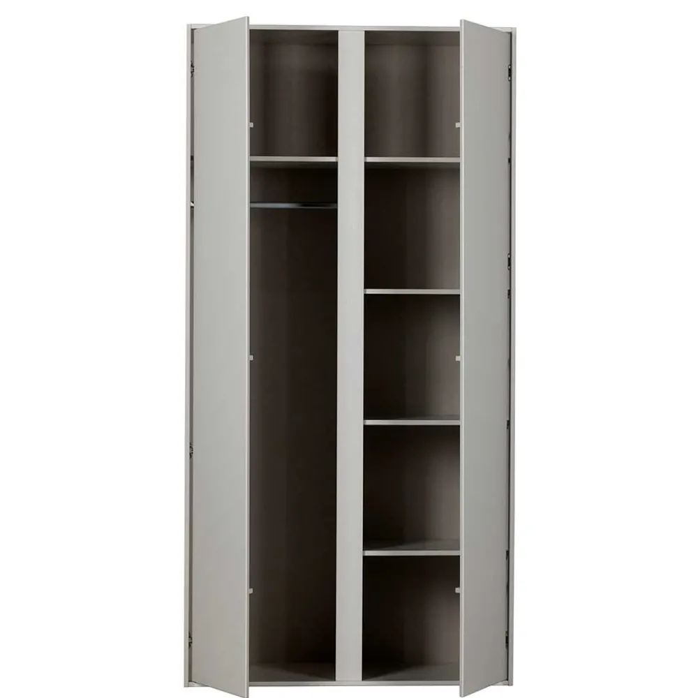 - Ausgestattet mit einer Kleiderstange und Hutboden sowie vier Einlegeböden auf der gegenüberliegenden Seite