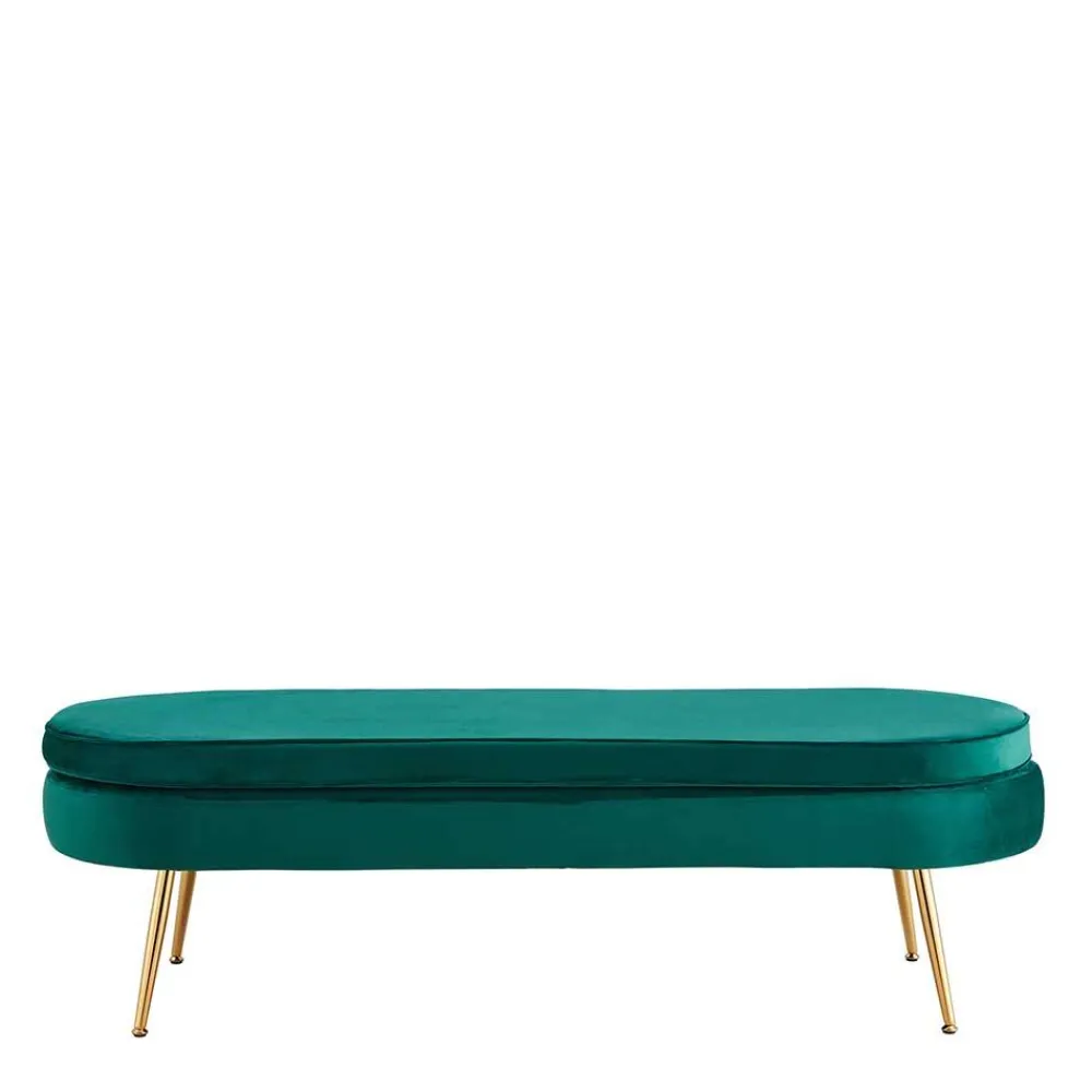 Samt steht wie kaum ein anderes Material für Eleganz und Wohnlichkeit. Der samtige Bezug aus 100 % Polyester fühlt sich nicht nur angenehm weich an, sondern ist gleichzeitig robust und pflegeleicht – ideal für den täglichen Gebrauch. Das goldfarbig verchromte Metallgestell bildet dazu einen wirkungsvollen Kontrast: glänzend, stabil und mit leicht abgespreizter Konstruktion setzt es stilvolle Akzente, ohne sich aufzudrängen. Diese Bank ist nicht nur ein Möbelstück, sondern ein Blickfang mit Substanz.