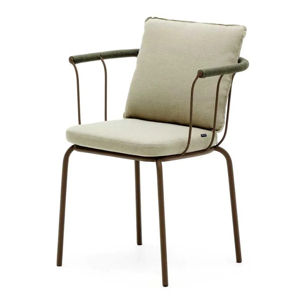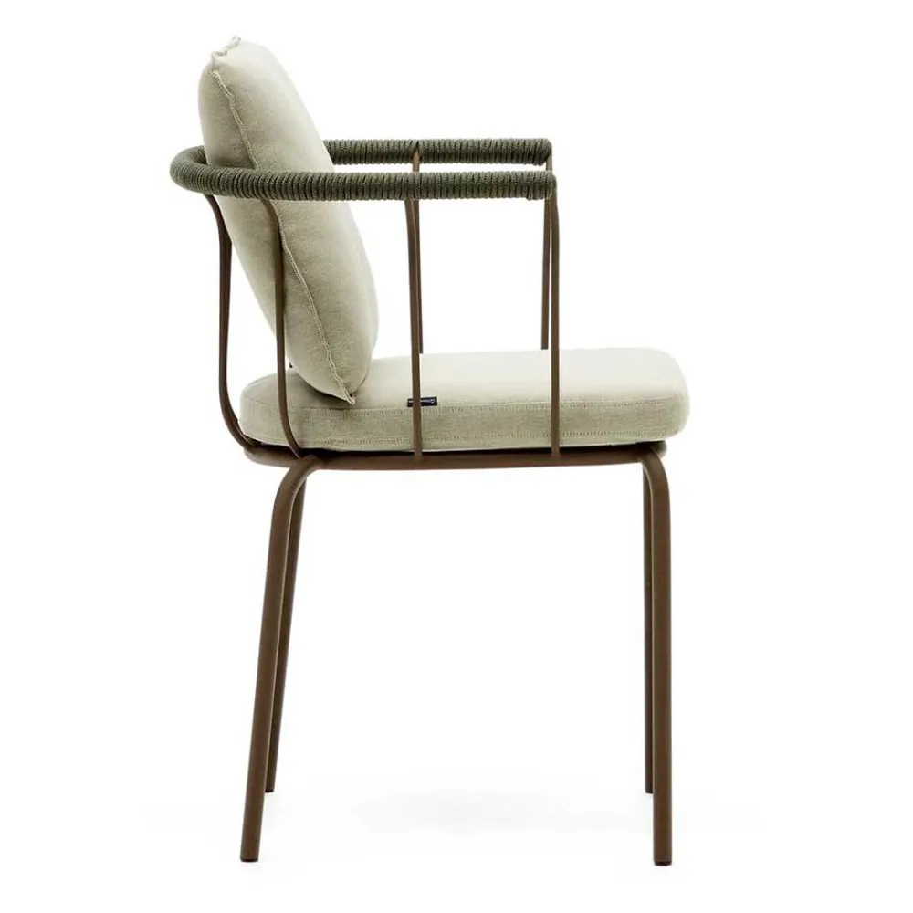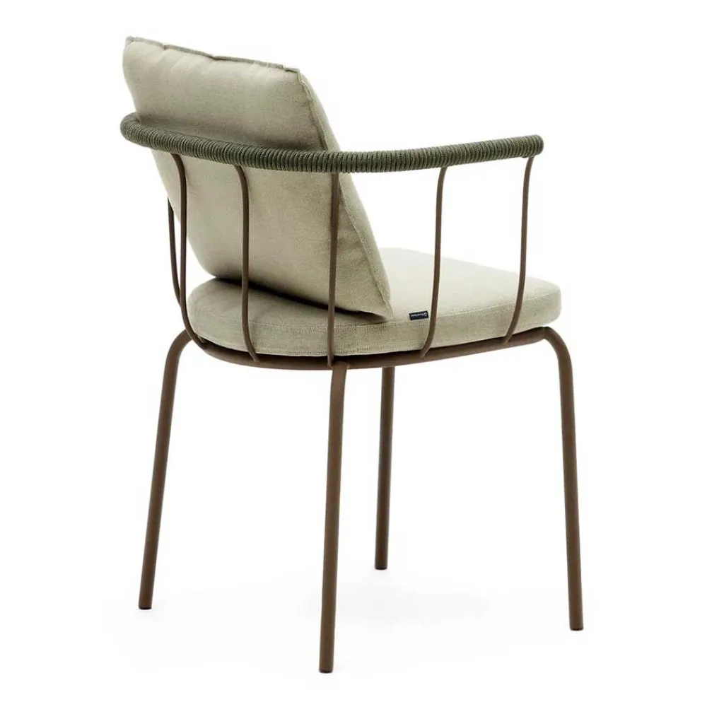 Bestehend aus massivem Stahl und Kordelgeflecht aus Polyester, bieten die „Ragusca“ Stühle eine langlebige und stabile Konstruktion. Stahl, bekannt für seine Robustheit und Haltbarkeit, sorgt dafür, dass diese Stühle den täglichen Gebrauch problemlos überstehen. Das Kordelgeflecht ist nicht nur optisch ansprechend, sondern bietet auch eine komfortable Sitzfläche, die sich perfekt an die Körperkonturen anpasst. Die braune Pulverbeschichtung des Metalls schützt vor Kratzern und Abnutzung und verleiht den Stühlen eine elegante, gleichmäßige Oberfläche, die leicht zu reinigen und pflegen ist.