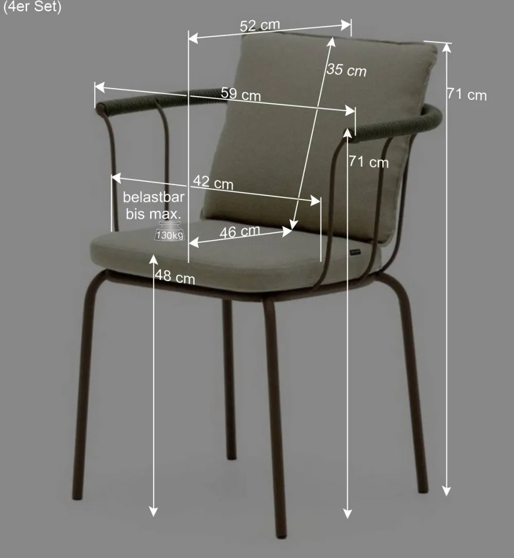 - Höhe der Armlehnen ca. 71 cm, Breite ca. 3 cm, Metall mit Polyester-Kordel