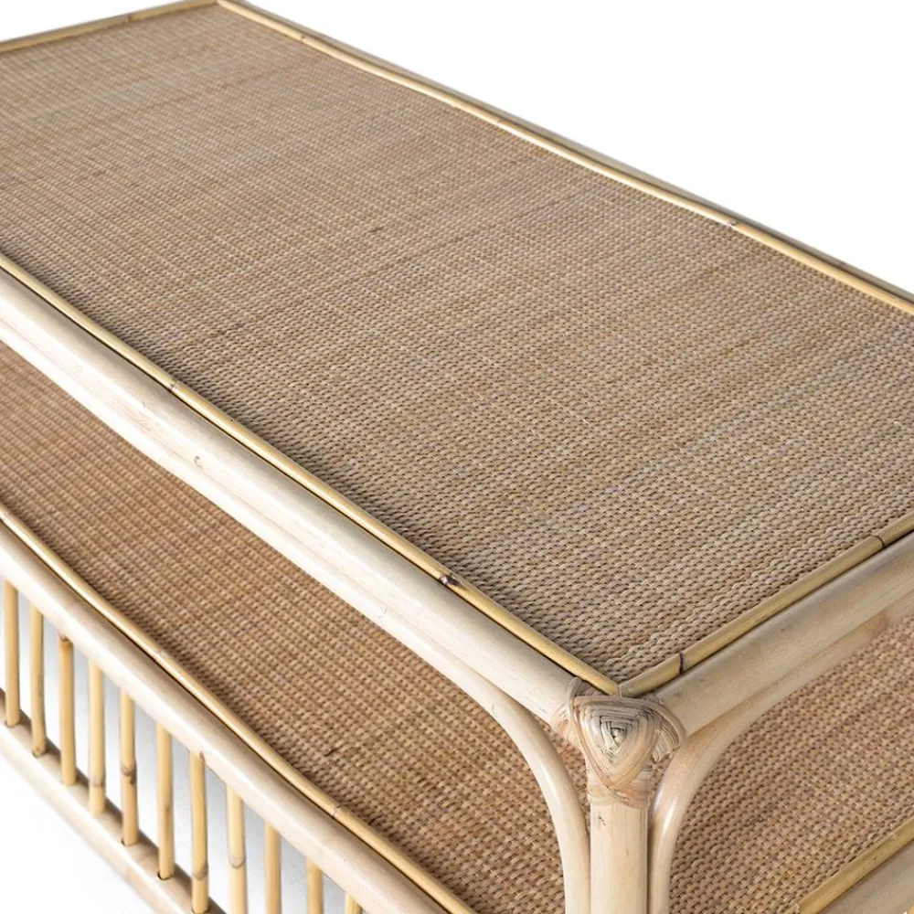 Gefertigt aus echtem Rattan bringt dieser Couchtisch die Schönheit der Natur direkt in Ihr Zuhause. Die von Hand verarbeiteten Oberflächen und die reizvolle Tischplatte aus feinem Geflecht betonen die authentische Qualität des Materials. Aufgrund der natürlichen Beschaffenheit von Rattan können leichte Abweichungen in Form, Farbe und Struktur auftreten, die den individuellen Charakter des Möbelstücks zusätzlich unterstreichen.