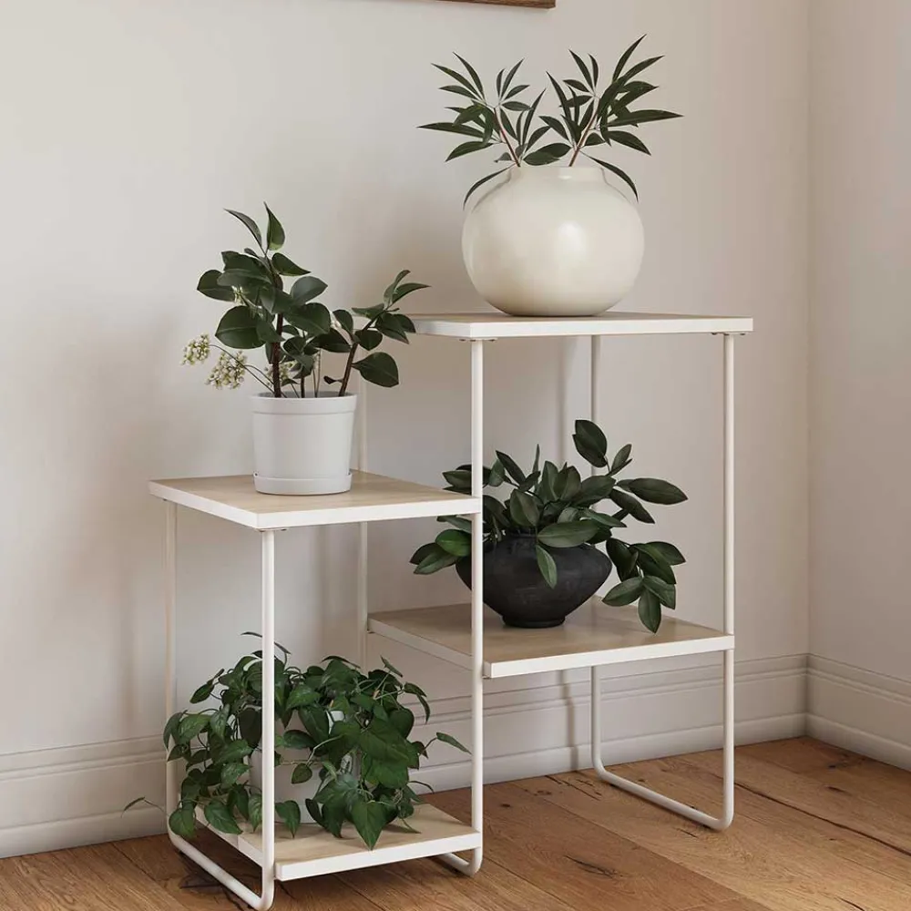 Mit vier Ablagen in verschiedenen Höhen bietet der Blumenständer „Romagna“ ausreichend Platz, um Ihre Pflanzen oder Dekorationselemente ins rechte Licht zu setzen. Die problemlos kombinierbare Farbgebung ermöglicht es Ihnen, diesen Blumenständer mühelos in Ihre bestehende Einrichtung zu integrieren.