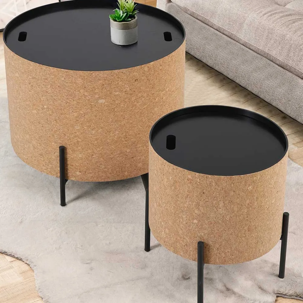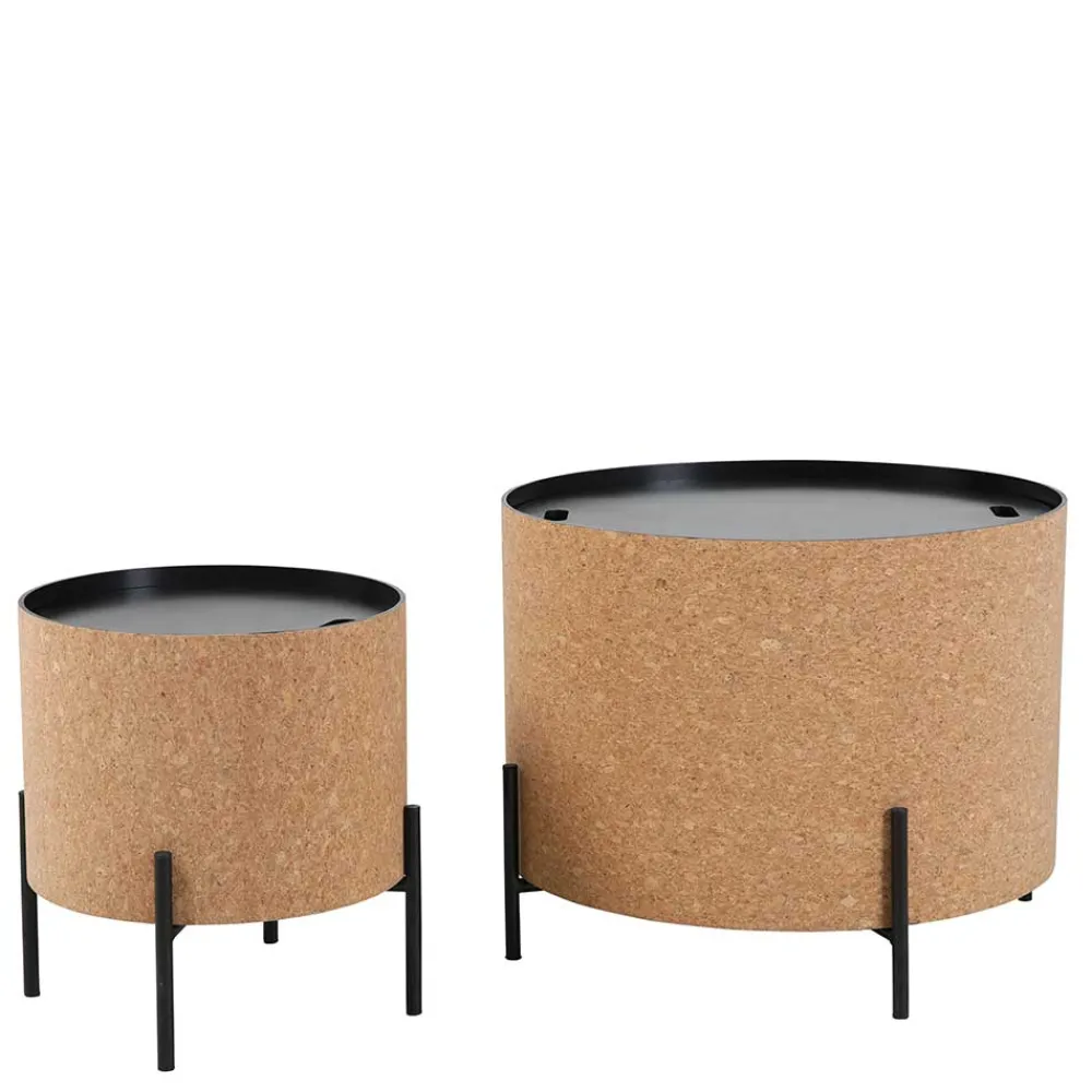 - Attraktive Beistelltische in Kork Naturfarben und Schwarz