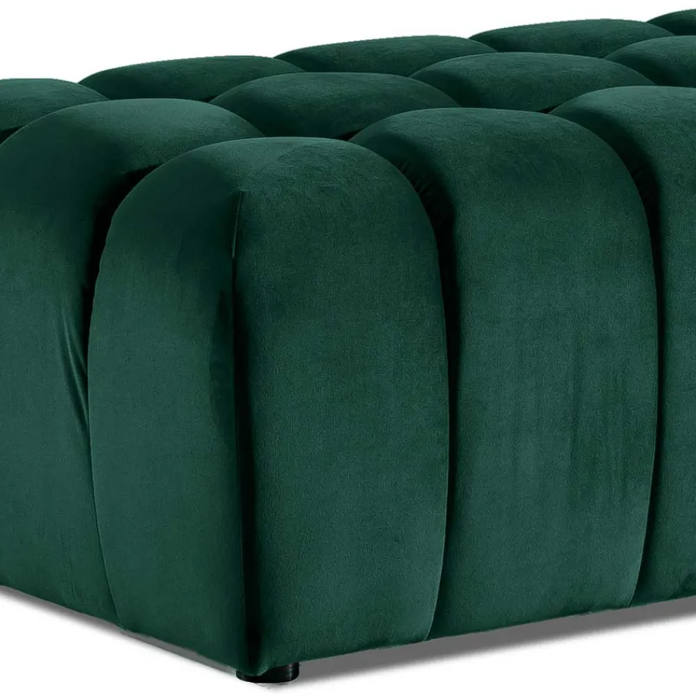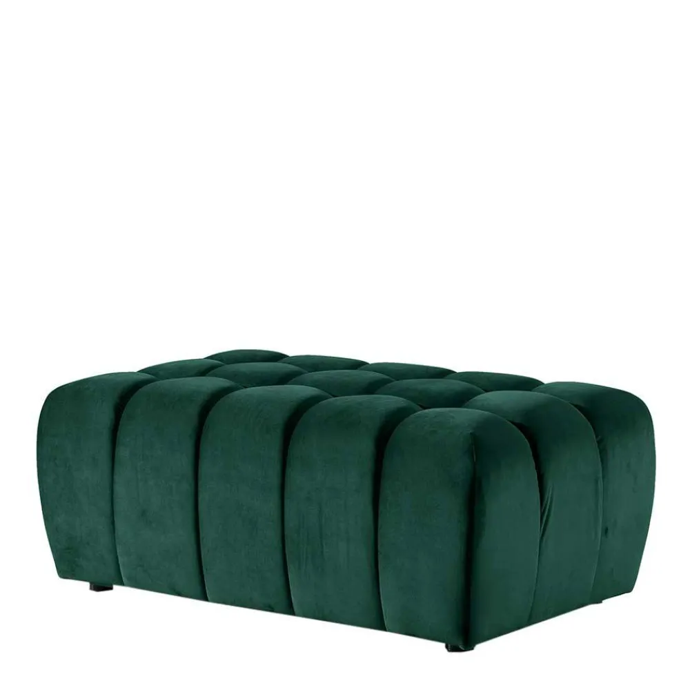 Der Bezug aus 100 % Polyester-Samt in einem satten Grün verleiht dem Hocker nicht nur eine luxuriöse Optik, sondern überzeugt auch haptisch auf ganzer Linie. Er fühlt sich weich und anschmiegsam an – fast wie ein sanftes Streicheln. Gleichzeitig ist der Stoff extrem strapazierfähig: Mit 100.000 Scheuertouren nach Martindale hält er auch intensiver Nutzung mühelos stand – perfekt für den Alltag mit Familie, Gästen oder Haustieren. Die tiefen Steppungen verleihen dem Hocker zusätzlich eine spannende Textur, die den edlen Look noch unterstreicht.