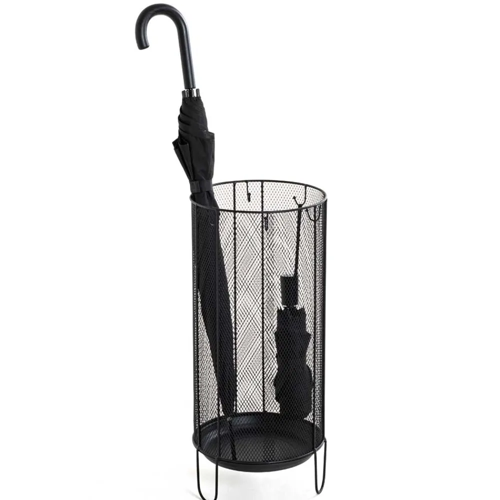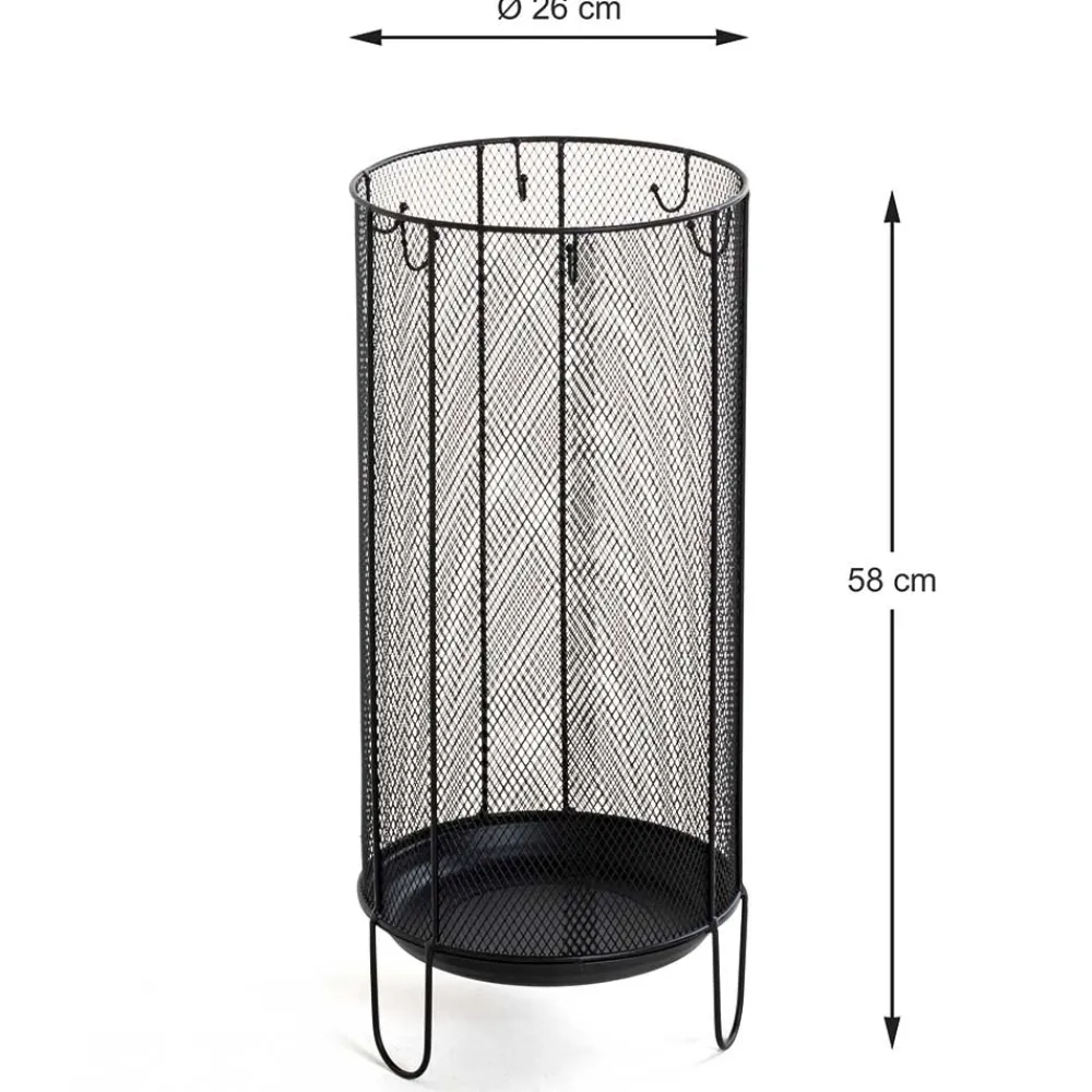 Der Schirmständer „Nurez“ bringt frischen Wind in den Eingangsbereich: In elegantem Schwarz gehalten, überzeugt er mit seiner feinmaschigen Gitterstruktur aus Metall, die nicht nur modern aussieht, sondern auch für eine besonders luftige Optik sorgt. Sein aufrechter, offener Look passt hervorragend zu urbanen Wohnkonzepten oder minimalistisch eingerichteten Fluren und beweist, dass Alltagsgegenstände nicht langweilig sein müssen.