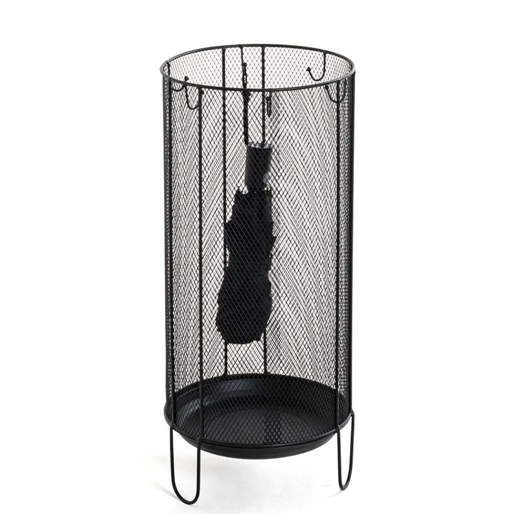 Gefertigt aus langlebigem Metall zeigt sich „Nurez“ von seiner robusten Seite – solide verarbeitet, mit klaren Linien und sauber gesetzten Schweißpunkten. Seine filigranen Wände sorgen nicht nur für ein attraktives Erscheinungsbild, sondern auch für die nötige Belüftung: so können nasse Schirme schneller trocknen, ohne unangenehme Gerüche zu hinterlassen.
