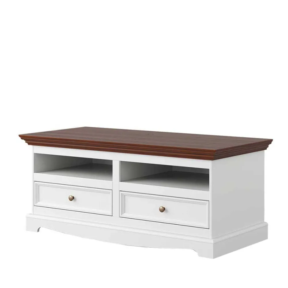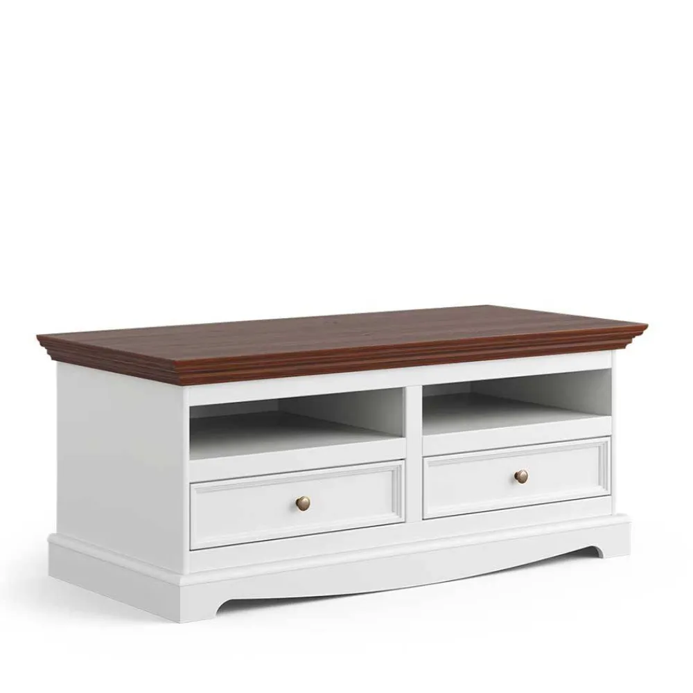 - Kleines TV Lowboard in Weiß und Nussbaumfarben