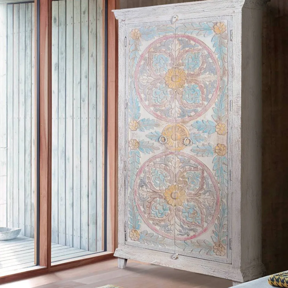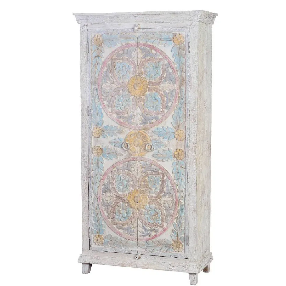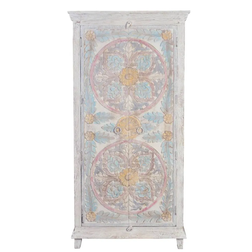- Hübscher Kleiderschrank in Holz White Wash und Pastell Bunt