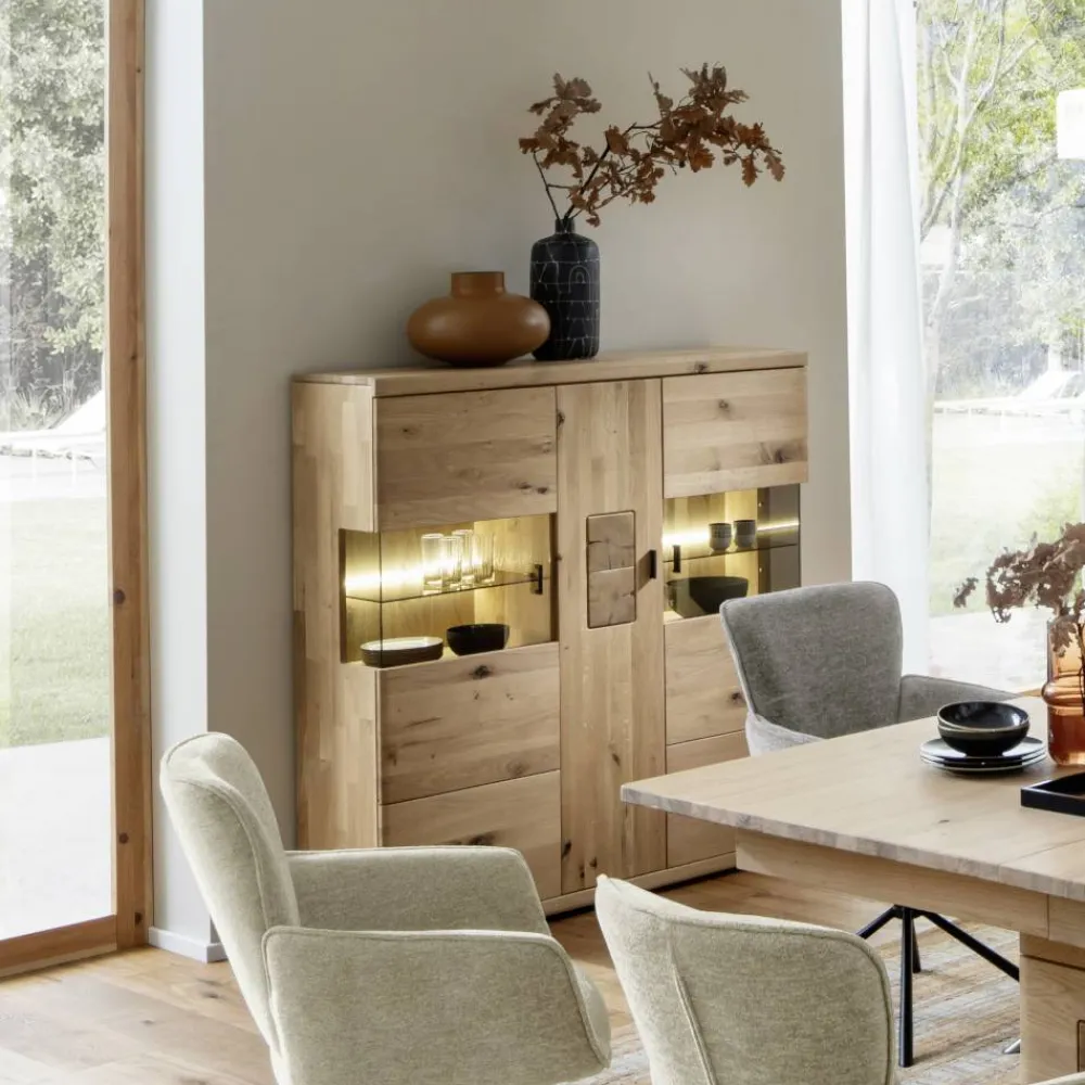 Massivholz trifft Glas – für eine natürliche Wohnatmosphäre