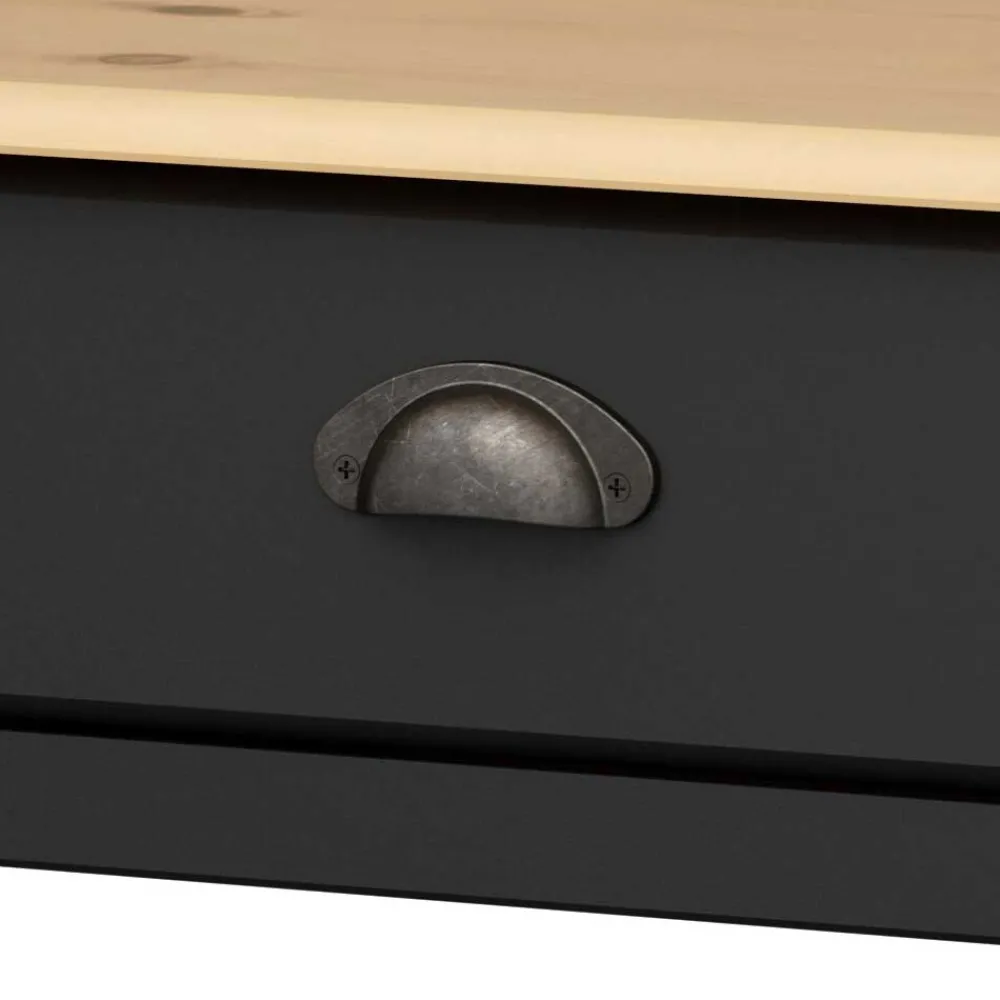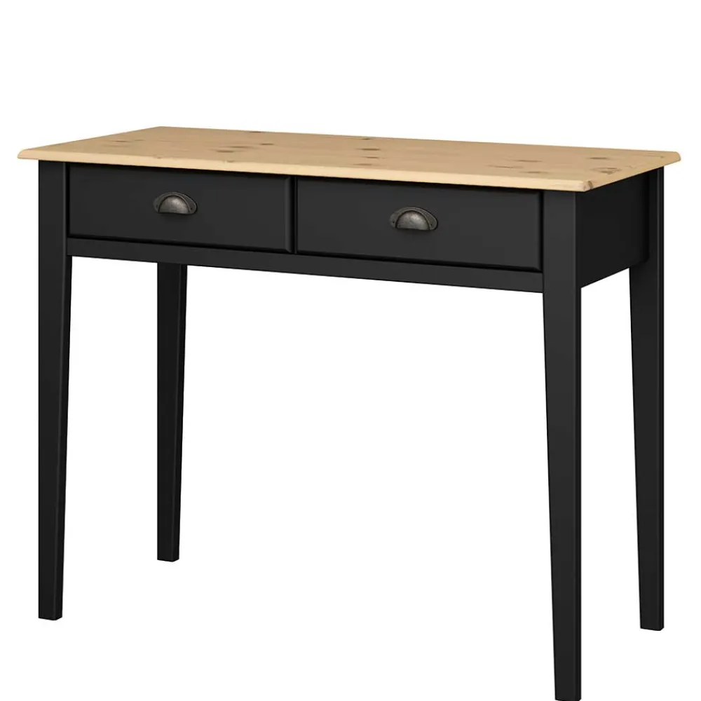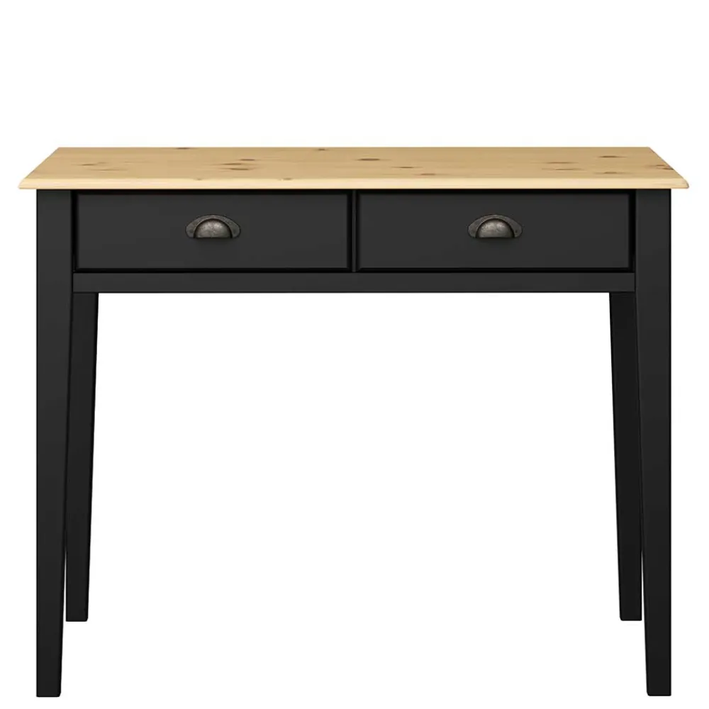 - Kontraststarker Schreibtisch in Schwarz und Kieferfarben