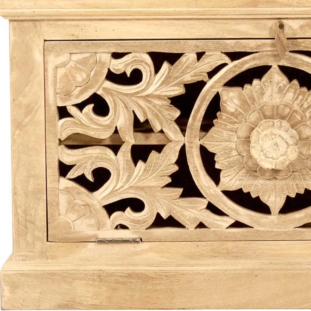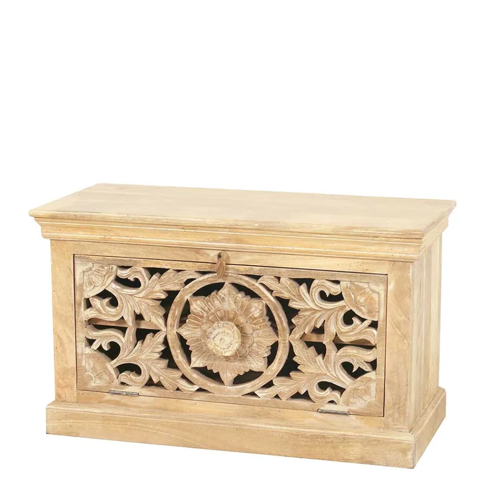 Wohnen Schuhbank aus Mangoholz Sandfarben – Runiasa