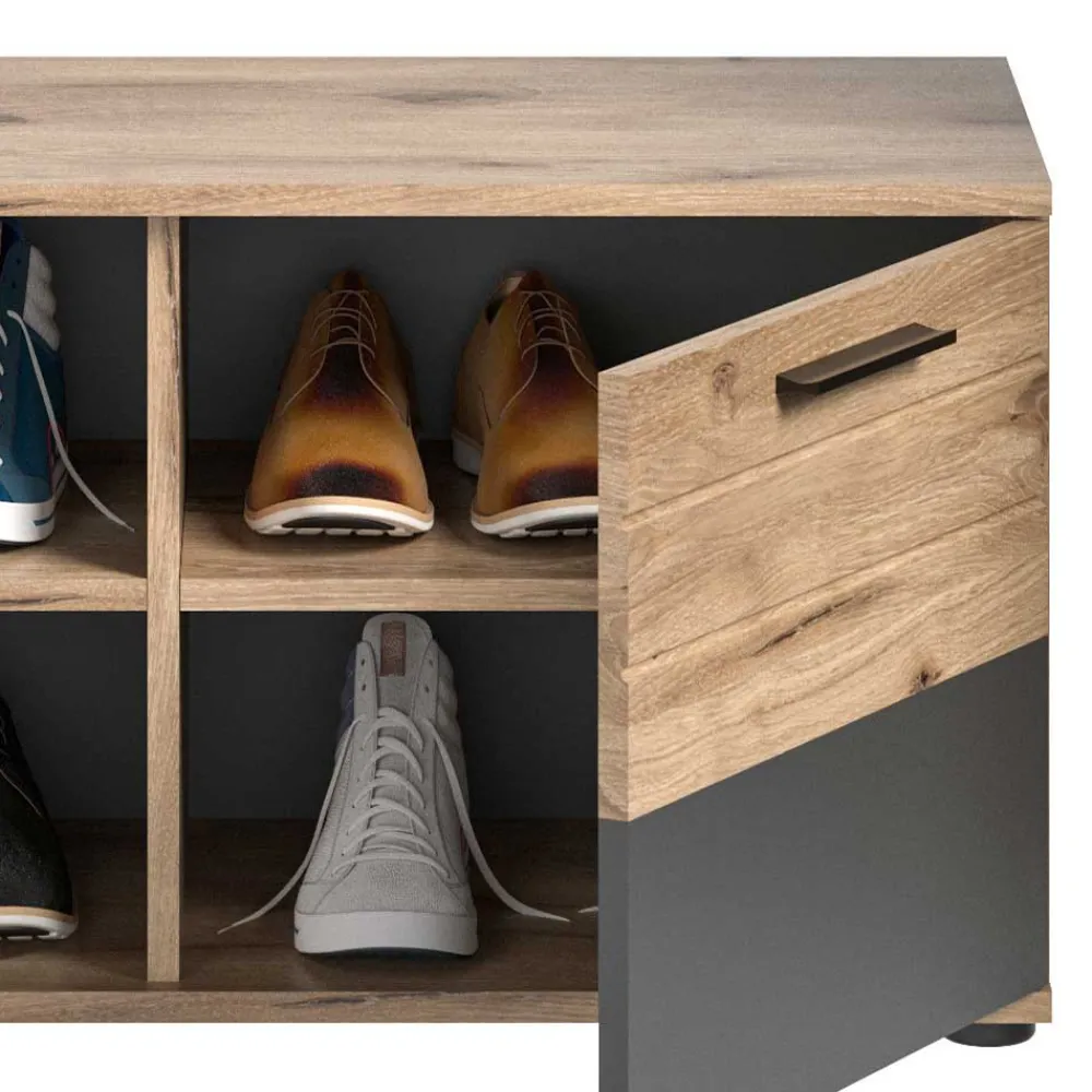 - Klasse Schuhbank in Wildeichefarben und Grau
