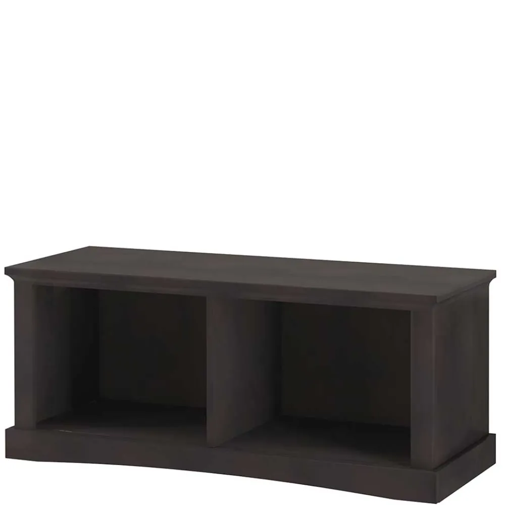 Das leicht ausgeschnittene Sockelgestell verleiht der Bank eine elegante Leichtigkeit, während die großzügige Sitzfläche mit einer Breite von 110 cm für angenehmen Komfort sorgt. Die Innenmaße der Fächer sind optimal auf die Unterbringung verschiedener Gegenstände abgestimmt.