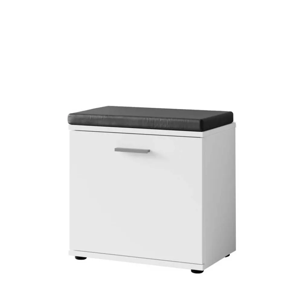 Die Schuhbank „Massa“ überzeugt durch hochwertige Materialien und sorgfältige Verarbeitung. Der pflegeleichte Kunstlederbezug aus 100 % Polyurethan in Schwarz setzt nicht nur optisch Akzente, sondern ist auch äußerst strapazierfähig. Die weißen Oberflächen sind melaminharzbeschichtet und verleihen der Bank eine edle Note.