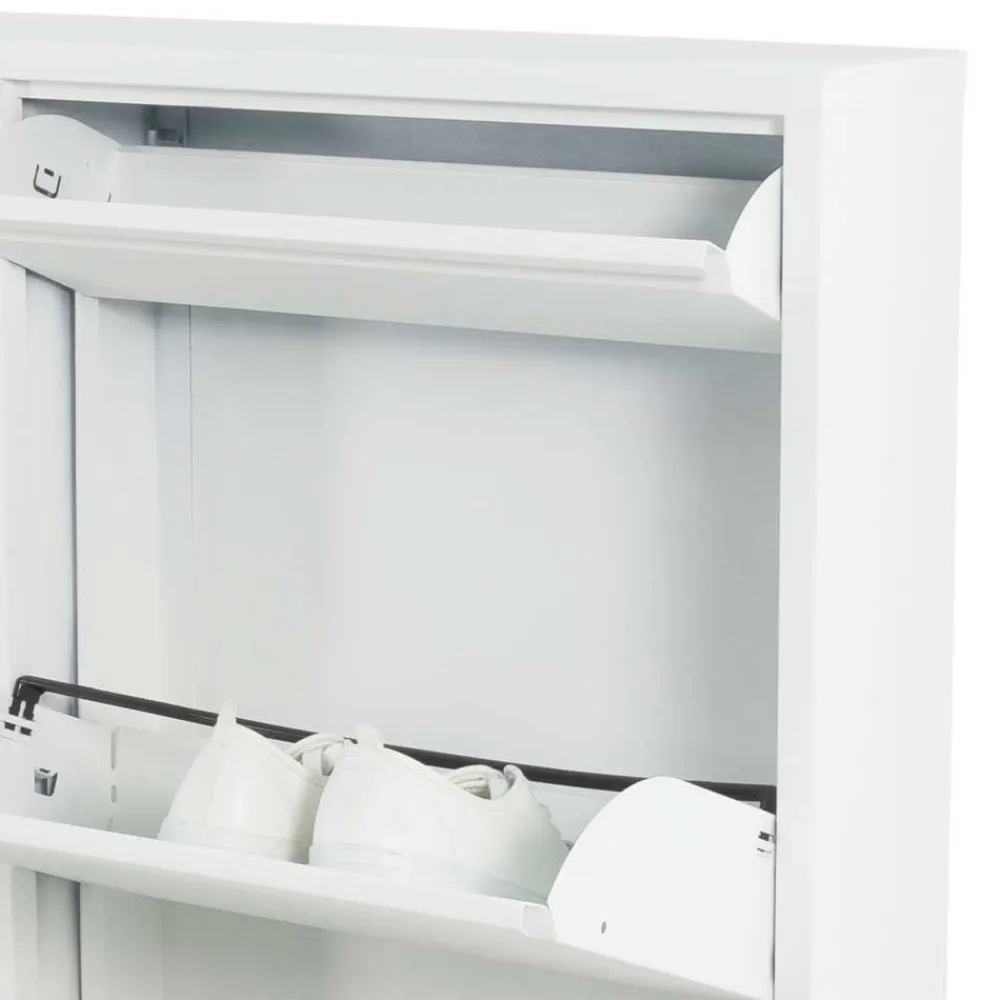Cioara ist mehr als nur ein Schuhschrank – er ist ein stilvolles Statement für Ordnungsliebhaber mit Anspruch. Dieses formschöne Möbelstück verbindet moderne Ästhetik mit durchdachter Alltagstauglichkeit und avanciert in jedem Flur, jeder Diele oder Garderobe zum echten Hingucker. Seine elegante, klare Linienführung in frischem Weiß sorgt für ein aufgeräumtes Ambiente und fügt sich nahtlos in jede moderne Wohnumgebung ein.