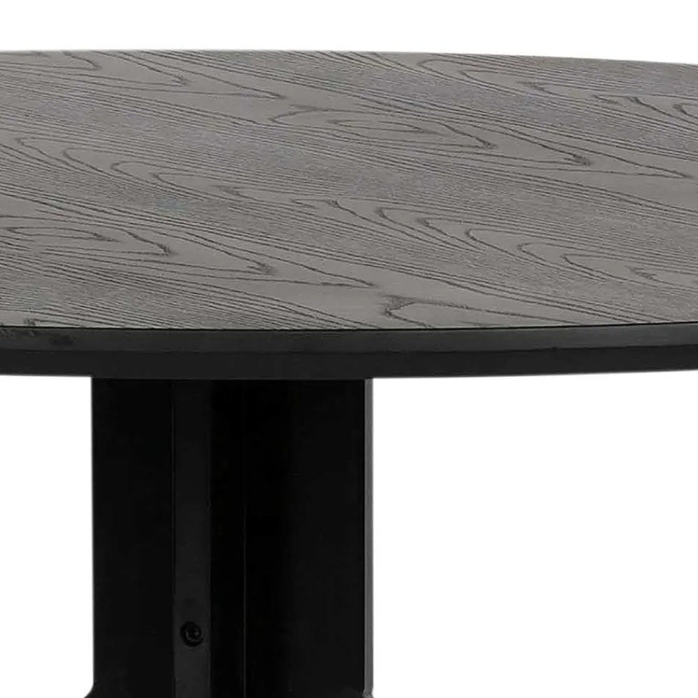 Ein Highlight des Tisches ist seine elegante, mattschwarze Tischplatte aus robustem MDF. Dank ihrer Materialstärke von ca. 2,5 cm überzeugt sie durch hervorragende Stabilität und Widerstandsfähigkeit im Alltag. Die mattschwarze Lackierung in ansprechender Holzoptik verleiht dem Möbelstück nicht nur einen besonders edlen Charakter, sondern lässt sich auch kinderleicht reinigen und pflegen. Besonders stilvoll wirkt dabei die sogenannte Schweizer Kante, bei der die Unterseite der Platte schräg nach innen zuläuft und somit einen filigranen, modernen Look erzeugt.