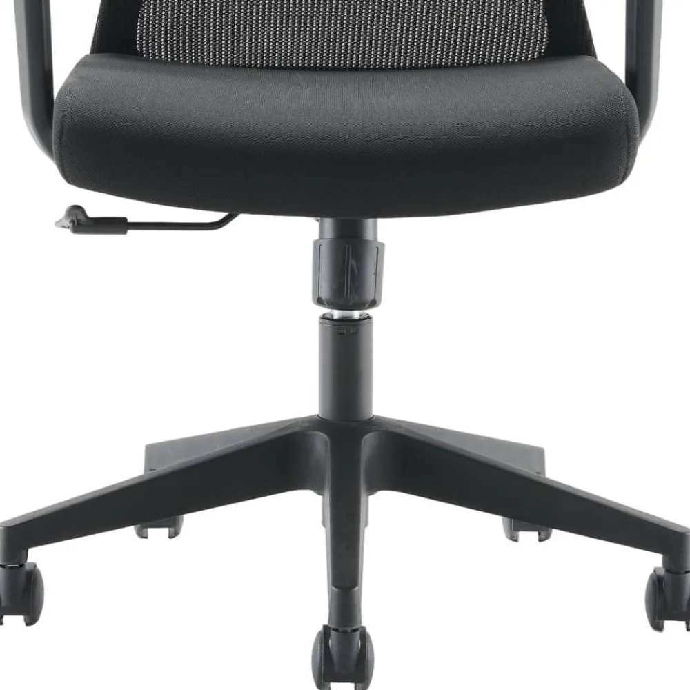 Gefertigt aus atmungsaktivem Meshgewebe und strapazierfähigem Webstoff (beide aus 100 % Polyester), bietet der Office Drehstuhl „Selavia“ eine angenehme Haptik sowie eine pflegeleichte Oberfläche. Die gepolsterte Sitzfläche unterstützt eine bequeme Haltung, während die konturierte Rückenlehne mit integrierter Lendenwirbelstütze für eine gesunde Sitzposition sorgt.