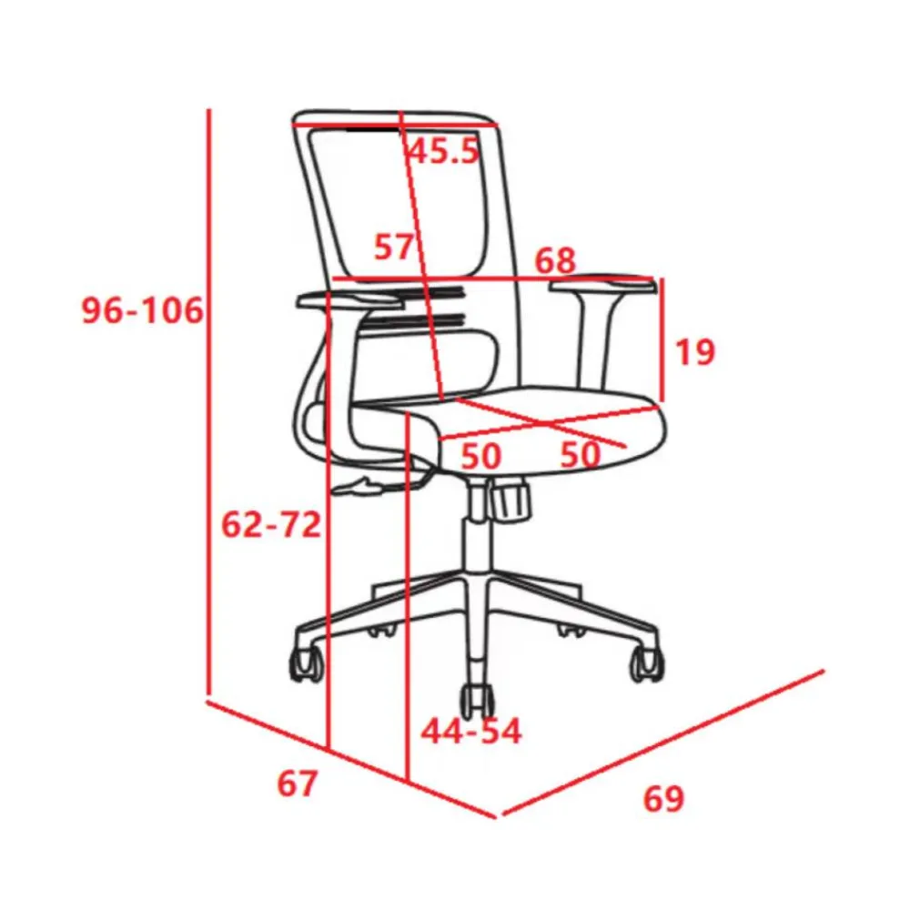 Dank der höhenverstellbaren Sitzfläche und des leichtgängigen Drehmechanismus lässt sich der Stuhl individuell anpassen. Die festen Armlehnen bieten zusätzliche Unterstützung, während das stabile Fußkreuz mit leichtlaufenden Rollen maximale Bewegungsfreiheit ermöglicht.
