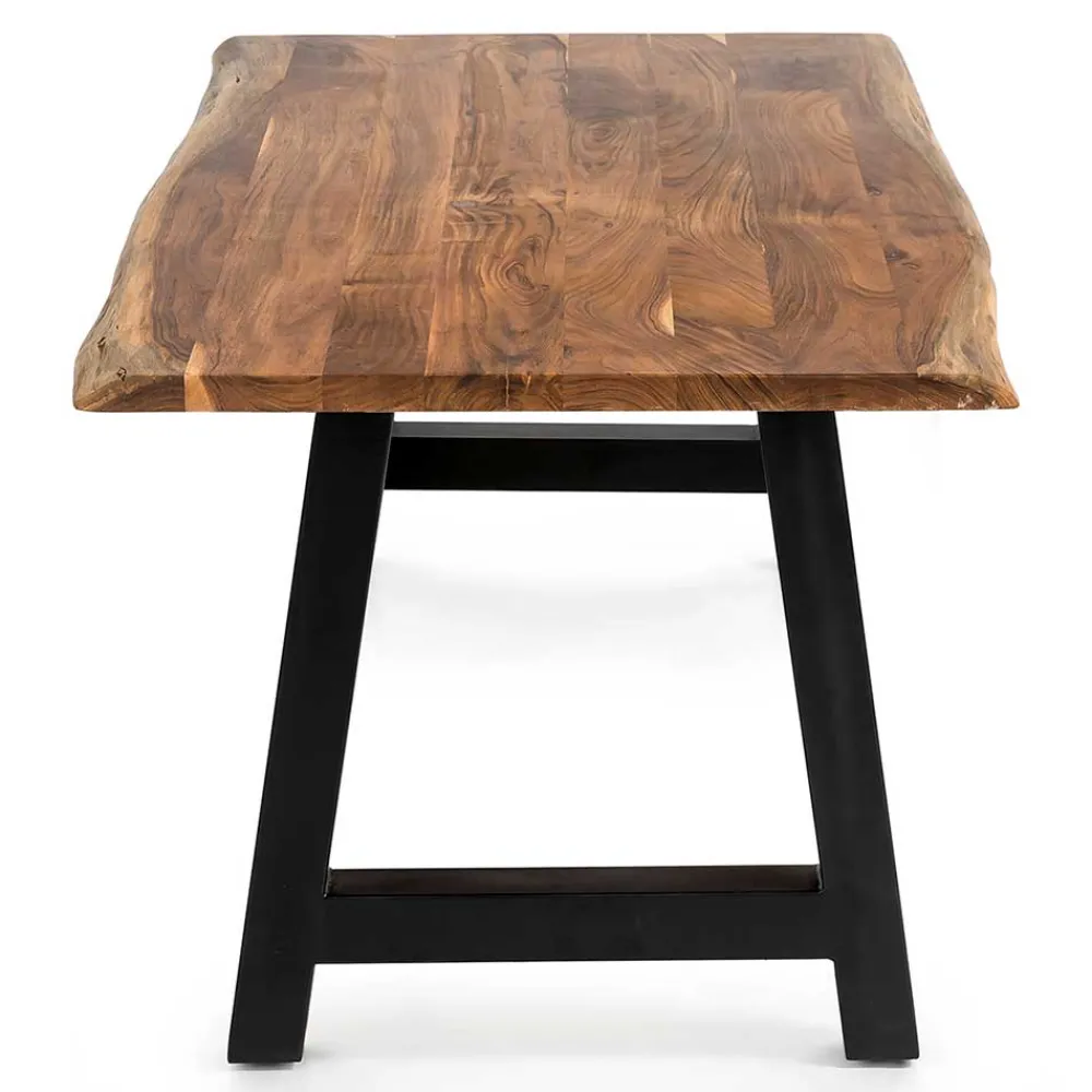 Das schwarz lackierte Metallgestell in moderner A-Form sorgt nicht nur für außergewöhnliche Standsicherheit, sondern unterstreicht auch den charakterstarken Industrial Look. Bodenschoner sind bereits integriert und schützen Ihren Boden zuverlässig – so genießen Sie die Vorzüge dieses Tisches ohne Kompromisse.