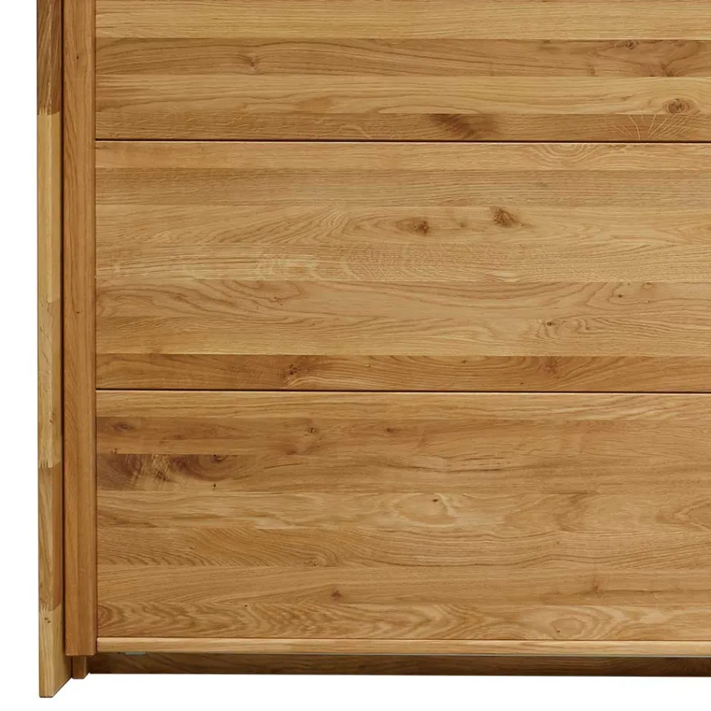 Der Schwebetürenschrank „Divnoi“ ist ein echter Hingucker in jedem Schlafzimmer. Gefertigt aus massiver Wildeiche und hochwertigem Spiegelglas, überzeugt er durch hervorragende Qualität und Verarbeitung. Die natürlich geölte Holzoberfläche sorgt für eine warme und natürliche Atmosphäre im Raum.